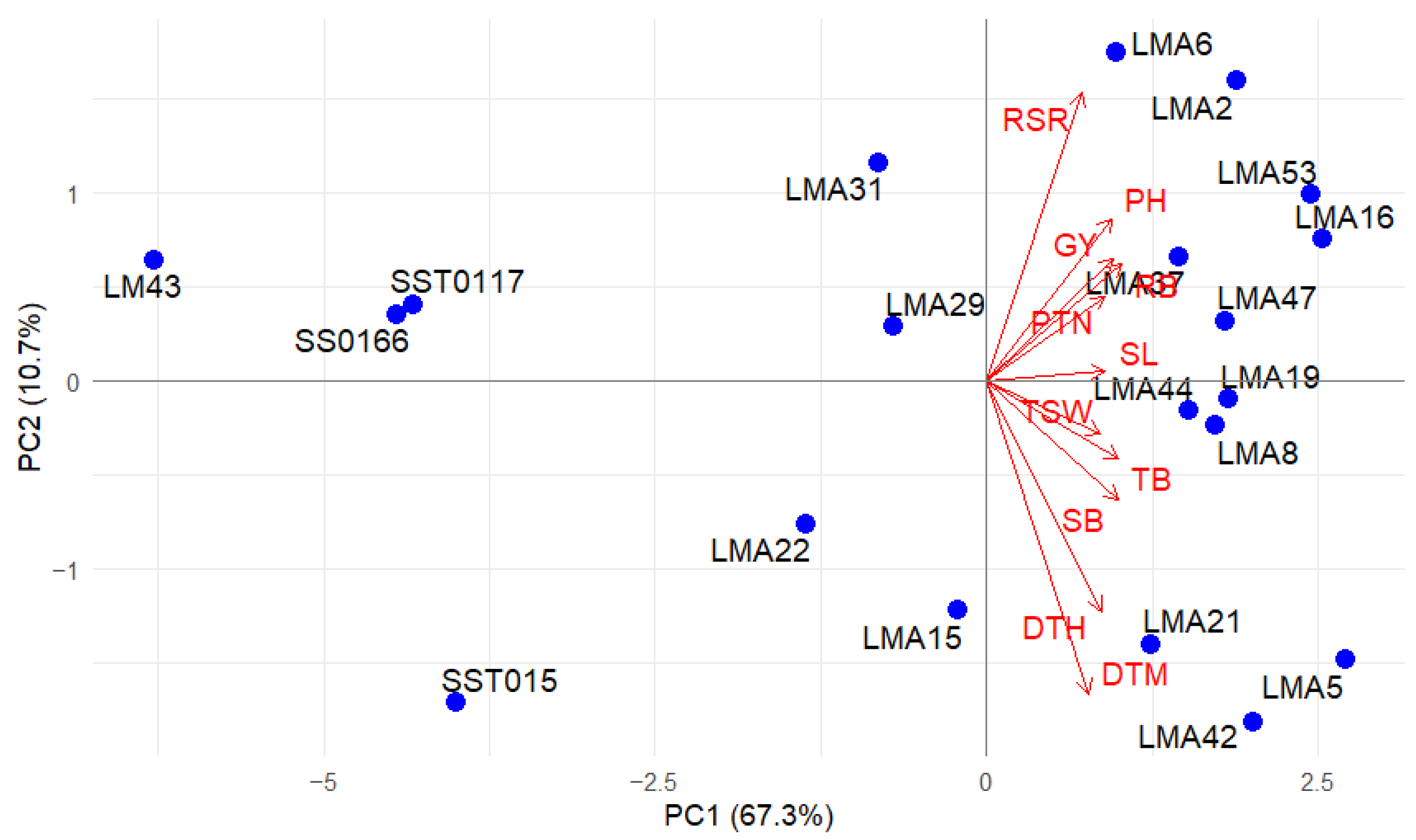| Traits | PC1 | PC2 | PC1 | PC2 | PC3 |