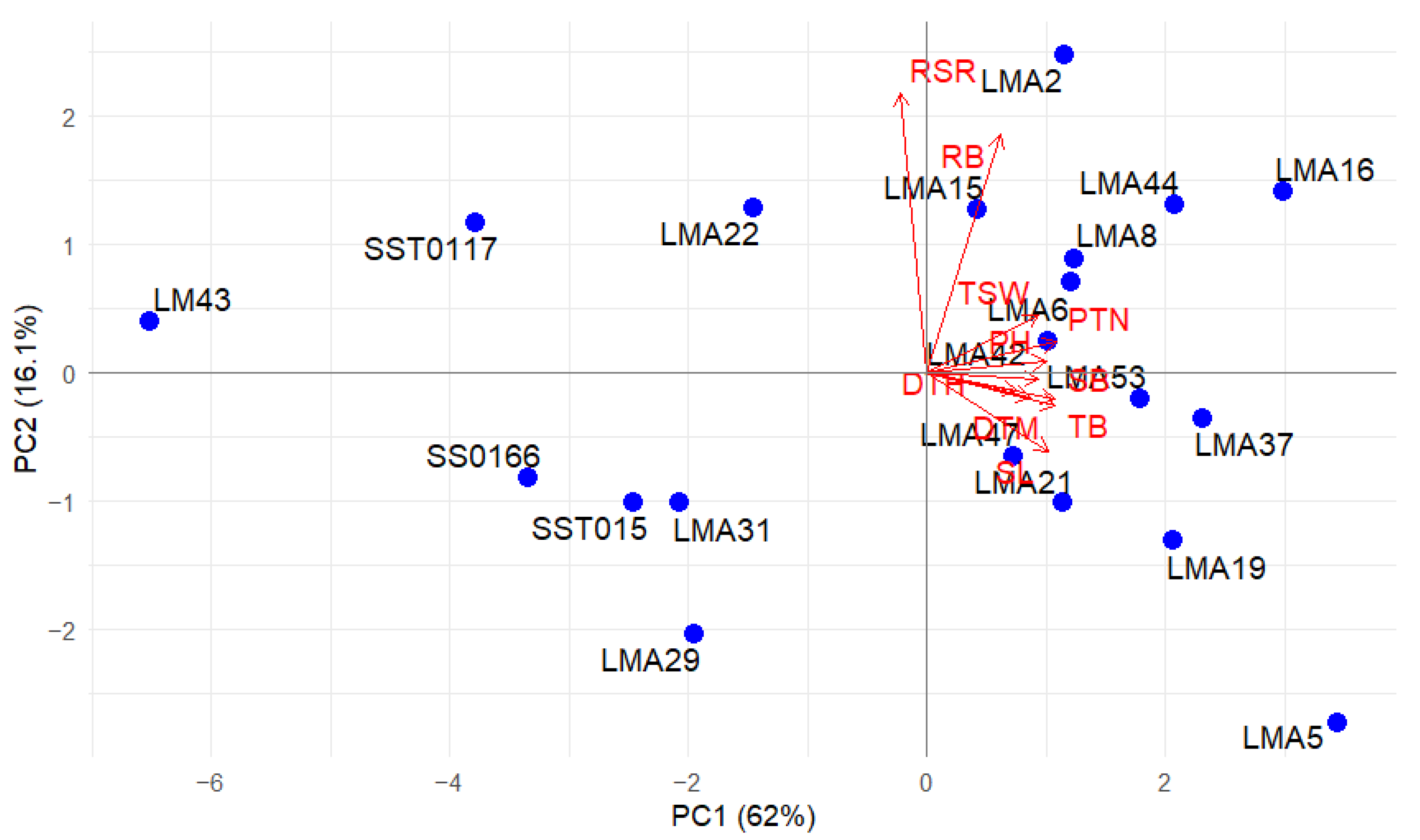 3.2. Phenotyping Based on Agro-Morphological Traits