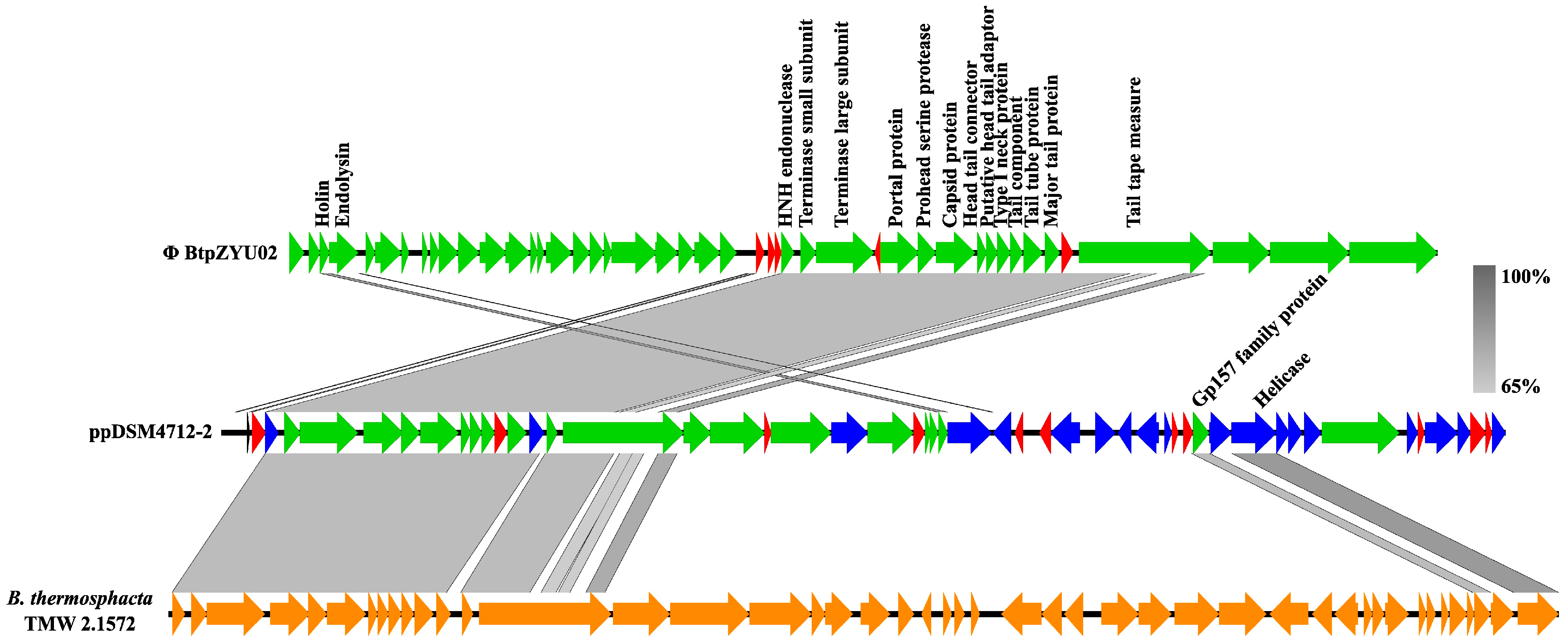 - Gingras, L.; Piché, L.C.; Saucier, L.; Vincent, A.T. The complete genomic sequence of the type strain Brochothrix thermosphacta DSM 20171 highlights a diversity of prophages in this species. Microbiol. Resour. Announc. 2024, 13, e00239-24. [Google Scholar] [CrossRef]