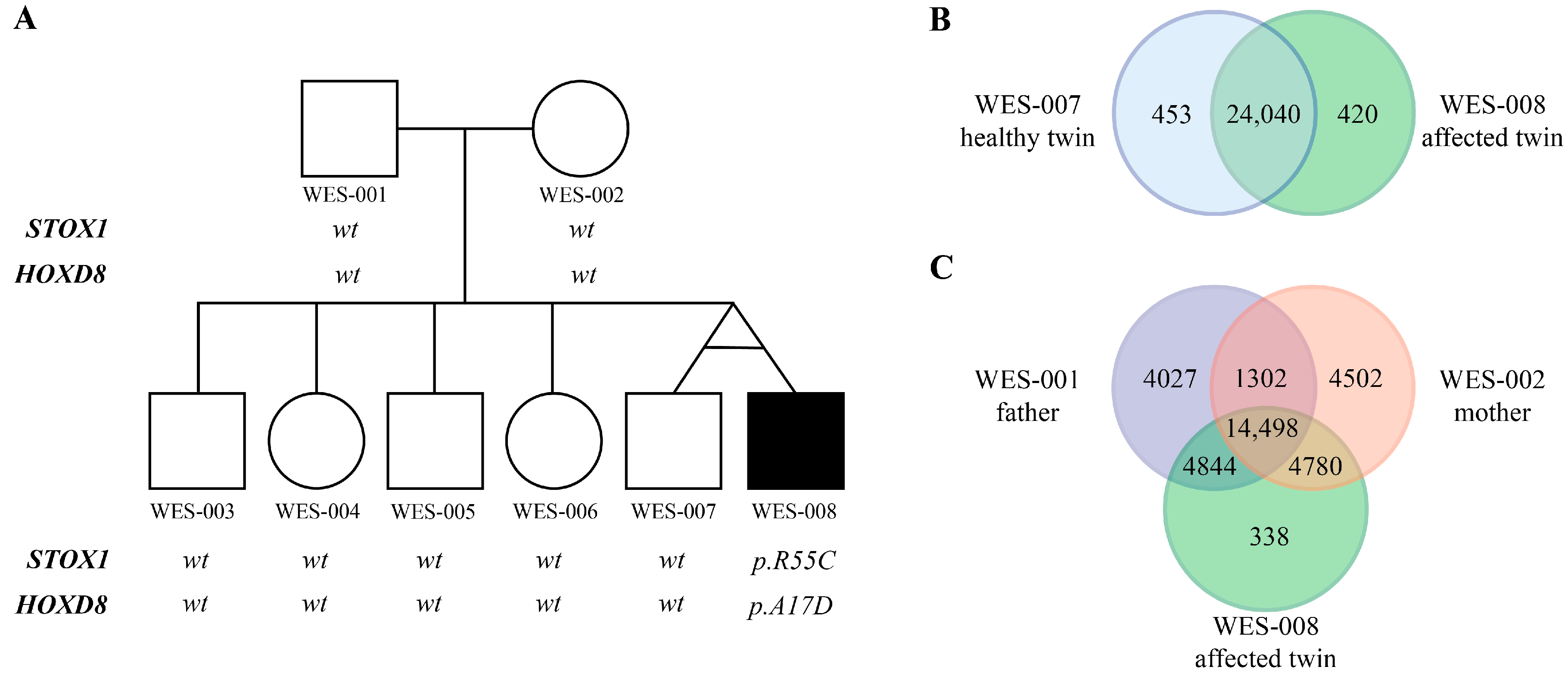 - Fan, X.; Ping, L.; Sun, H.; Chen, Y.; Wang, P.; Liu, T.; Jiang, R.; Zhang, X.; Chen, X. Whole-Exome Sequencing of Discordant Monozygotic Twin Families for Identification of Candidate Genes for Microtia-Atresia. Front. Genet. 2020, 11, 568052. [Google Scholar] [CrossRef] [PubMed]