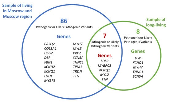 Figure 6 shows the total number of PVs and LPVs in the general population sub-sample and the cohort of long-living individuals from Moscow and the Moscow region, as well as seven variants common to both groups.