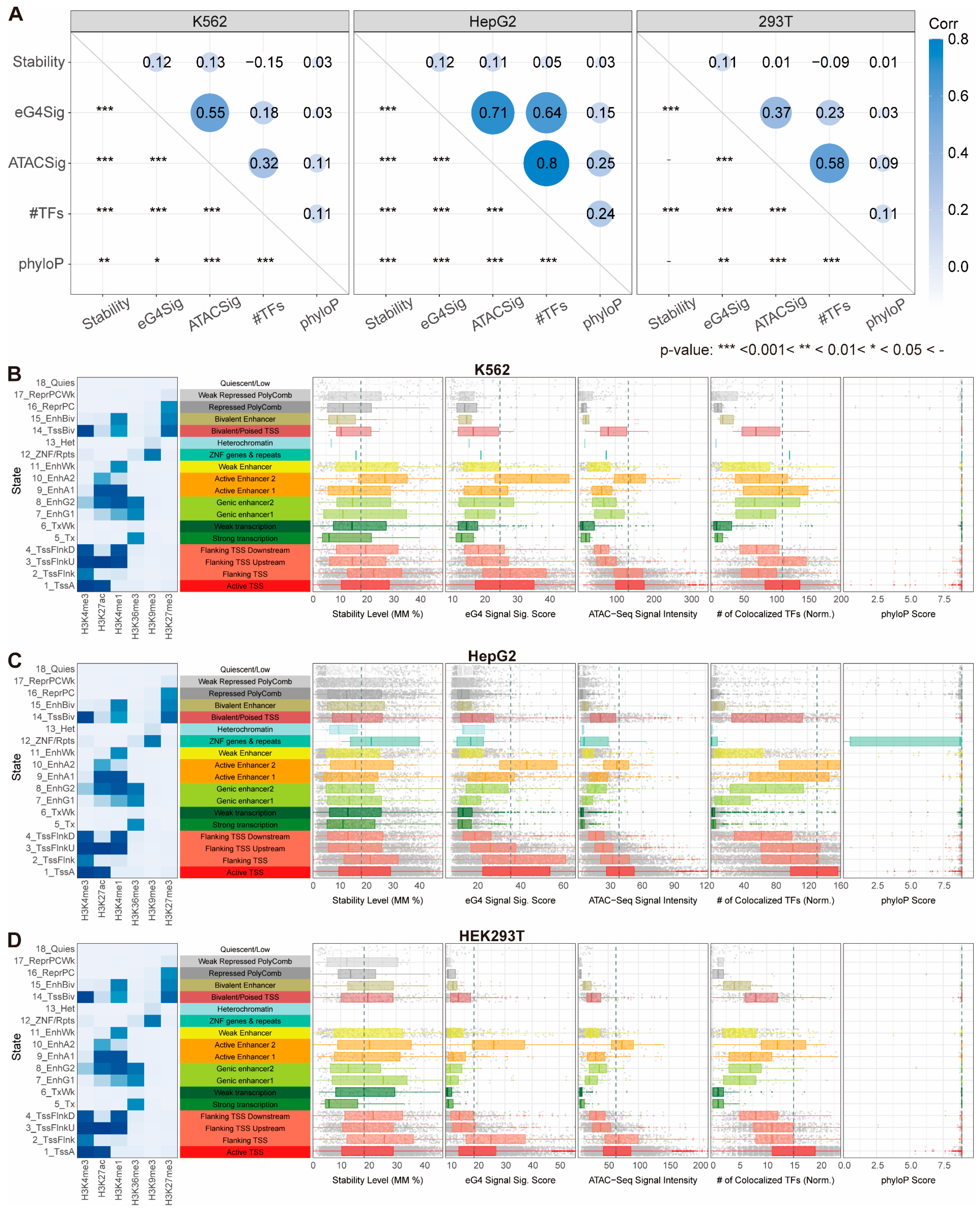 3.1. G4 Stability Correlates with eG4 Signals as Well as Chromatin and Transcriptional Regulatory Signals