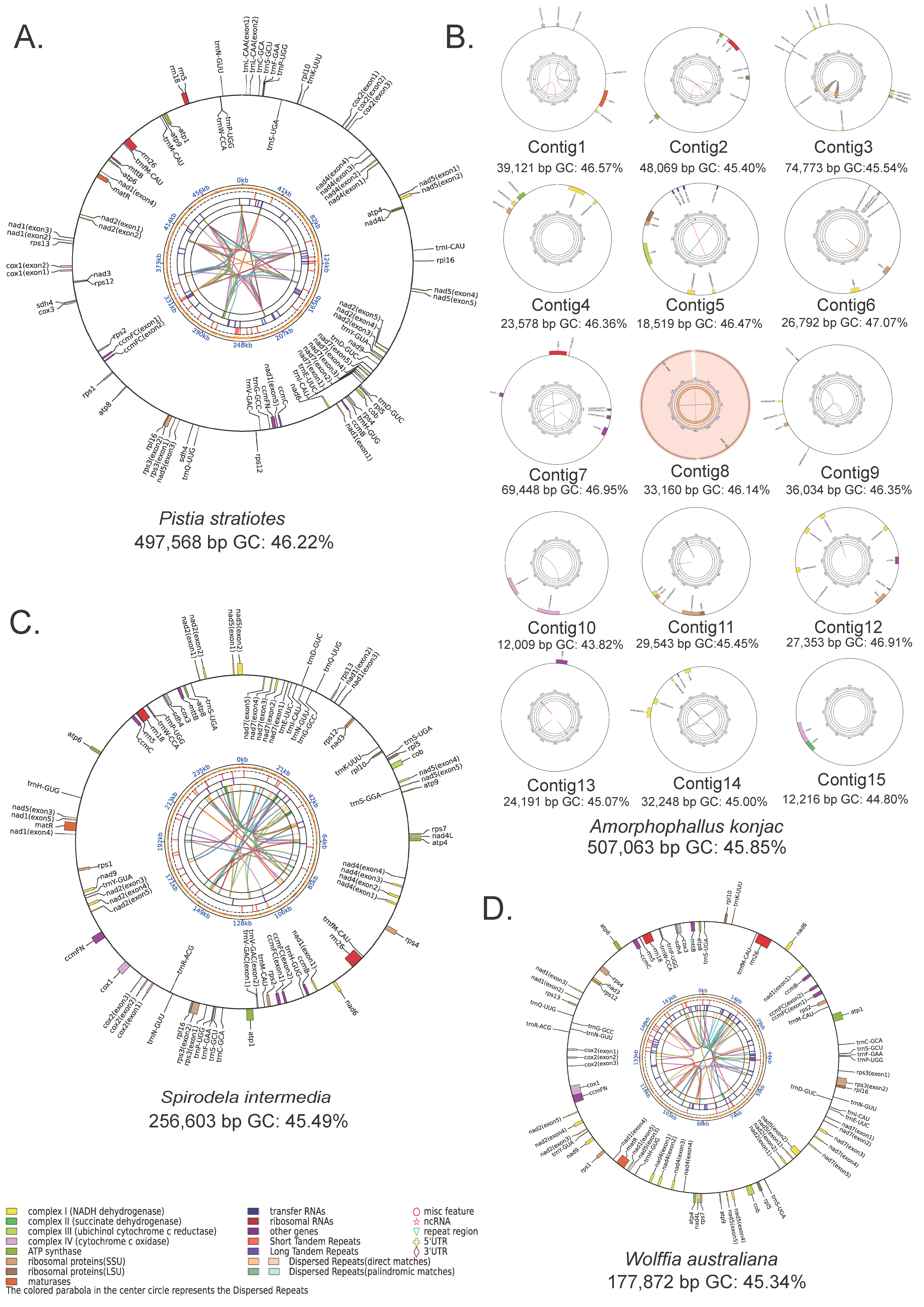 | Amorphophallus konjac | contig1-contig15 | terrestrial | 507,063 | 15 | 36 (41) | 16 | 3 | 19 | 5 | 24 |