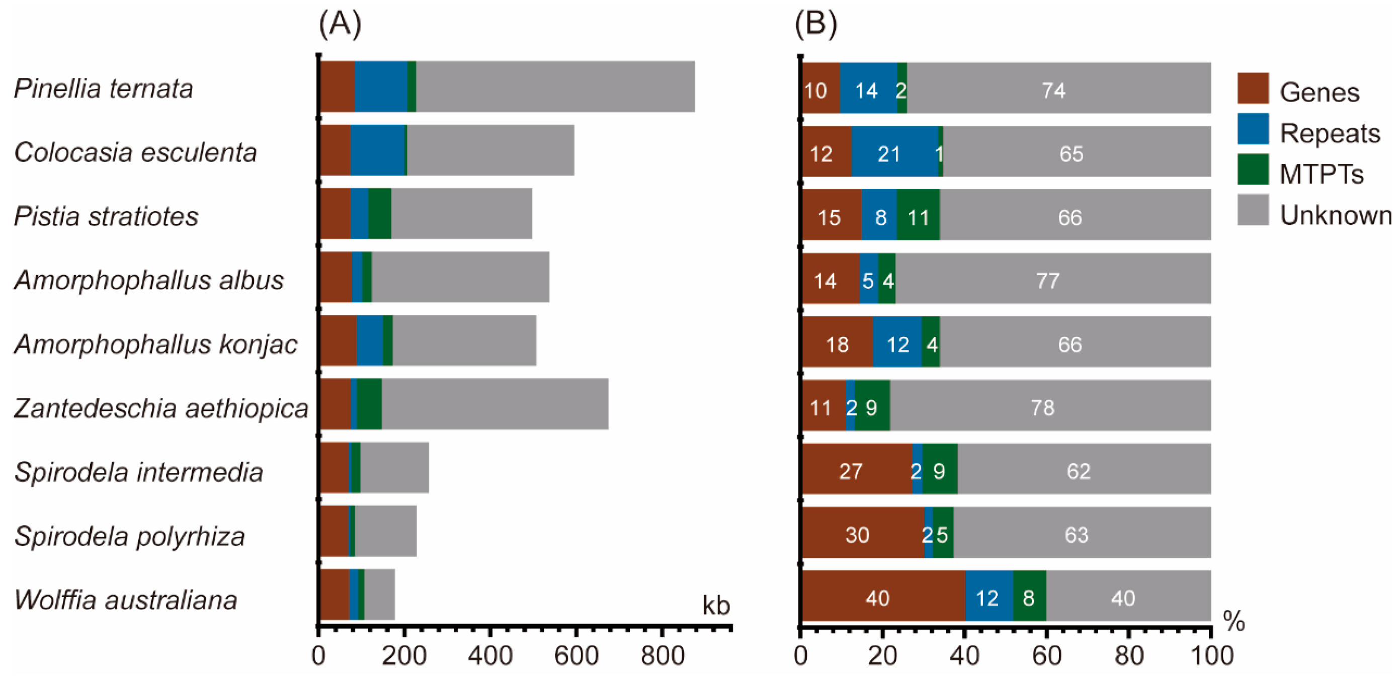 - Guo, Y.; Li, Z.; Jin, S.; Chen, S.; Li, F.; Wu, H. Assembly and comparative analysis of the complete mitochondrial genome of two species of calla lilies (Zantedeschia, Araceae). Int. J. Mol. Sci. 2023, 24, 9566. [Google Scholar] [CrossRef] [PubMed]