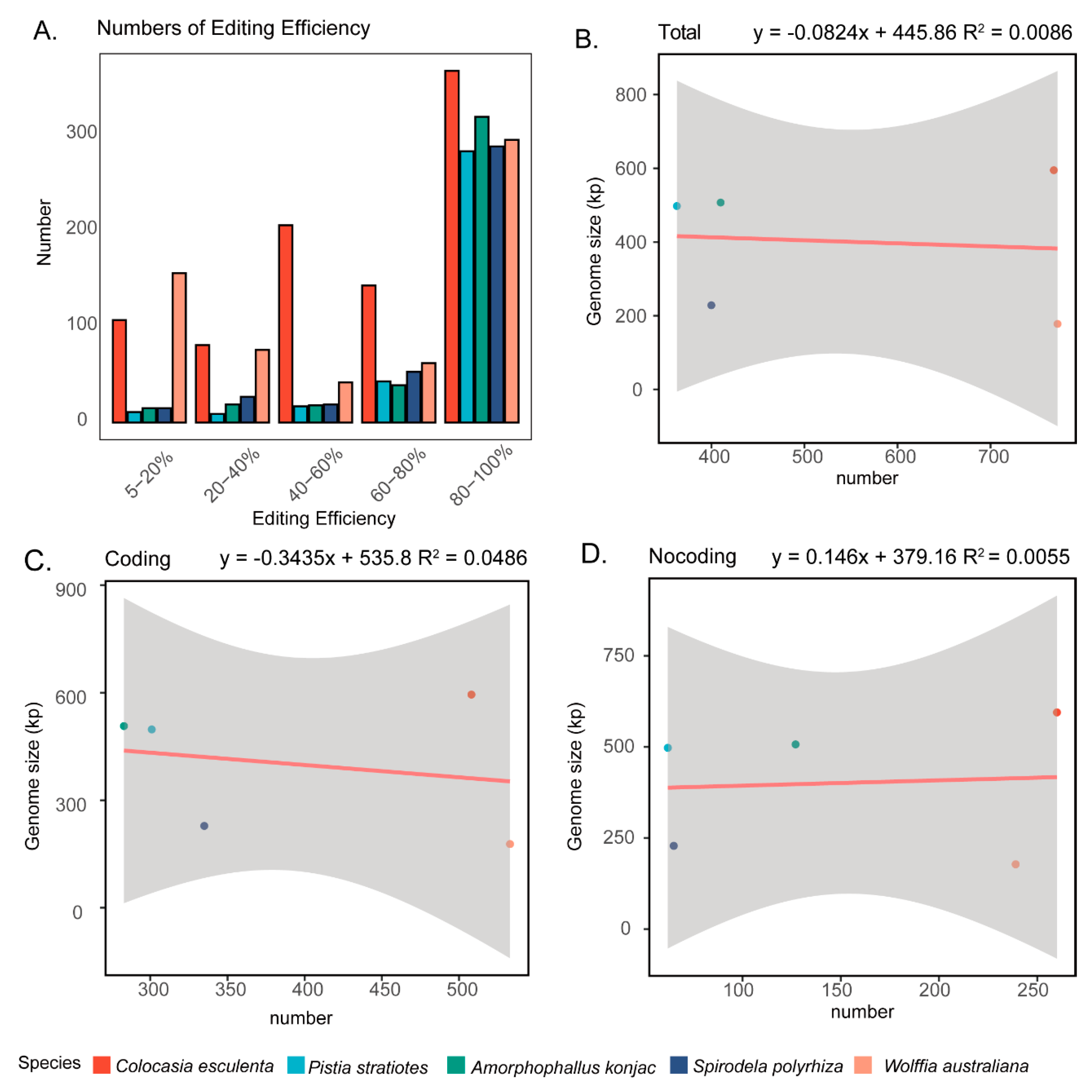 | Colocasia esculenta | PP389238-PP389242 | terrestrial | 594,811 | 5 | 36 | 17 (18) | 3 | 19 | 5 | 24 |