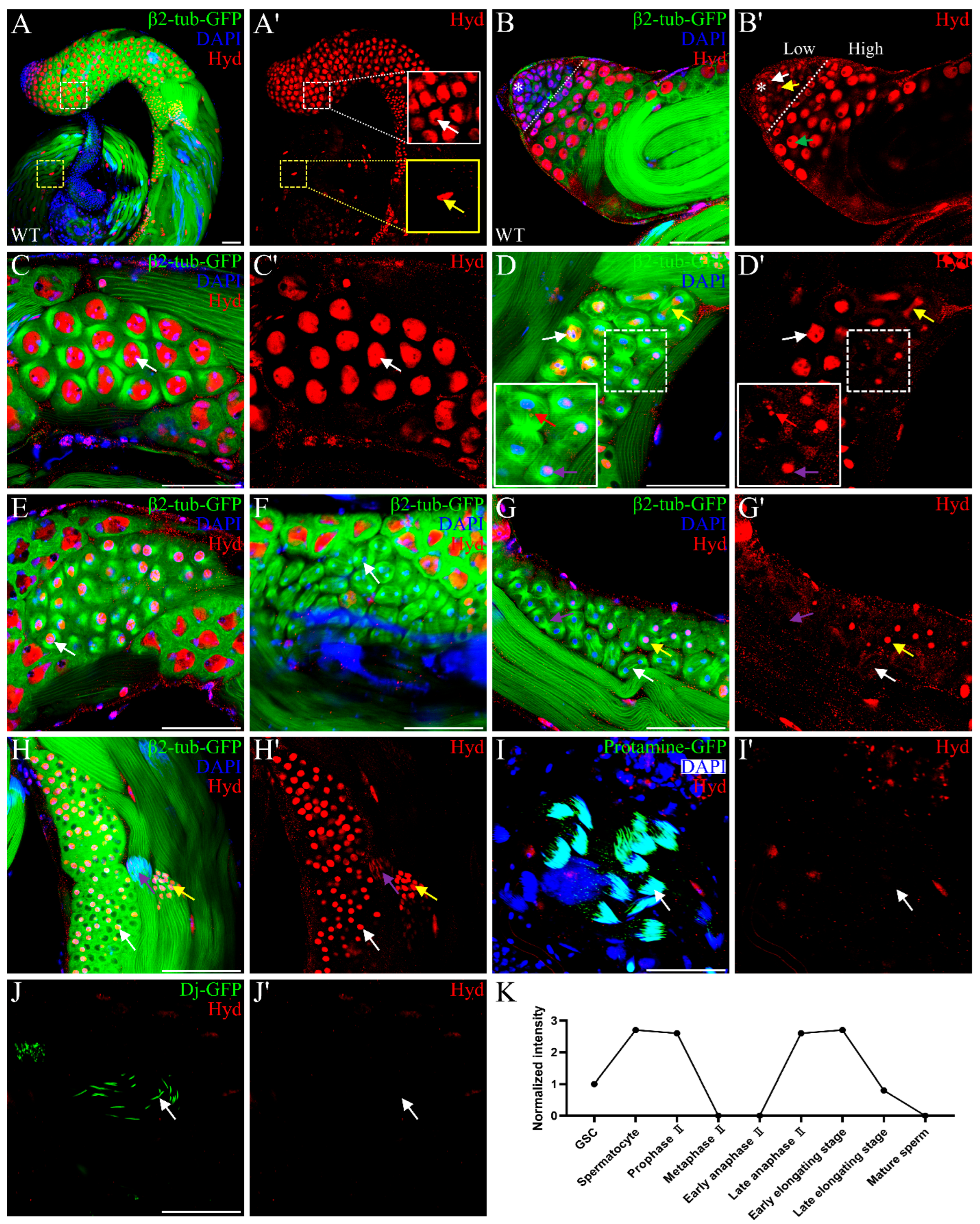 3.1. Hyd Displays a Dynamic, Stage-Specific Expression Pattern During Spermatogenesis