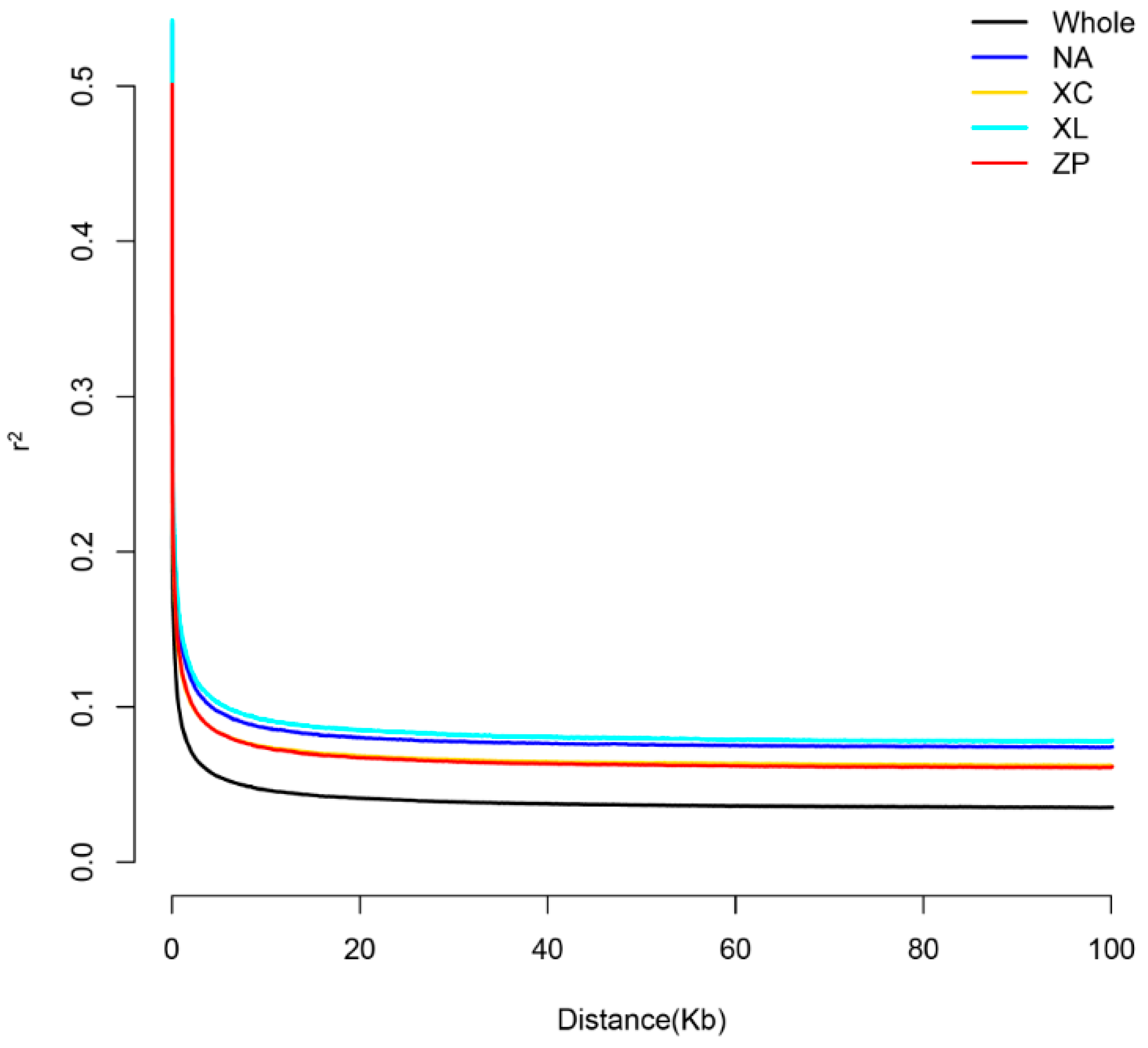 - Zhang, C.; Dong, S.S.; Xu, J.Y.; He, W.M.; Yang, T.L. PopLDdecay: A fast and effective tool for linkage disequilibrium decay analysis based on variant call format files. Bioinformatics 2019, 35, 1786–1788. [Google Scholar] [CrossRef] [PubMed]