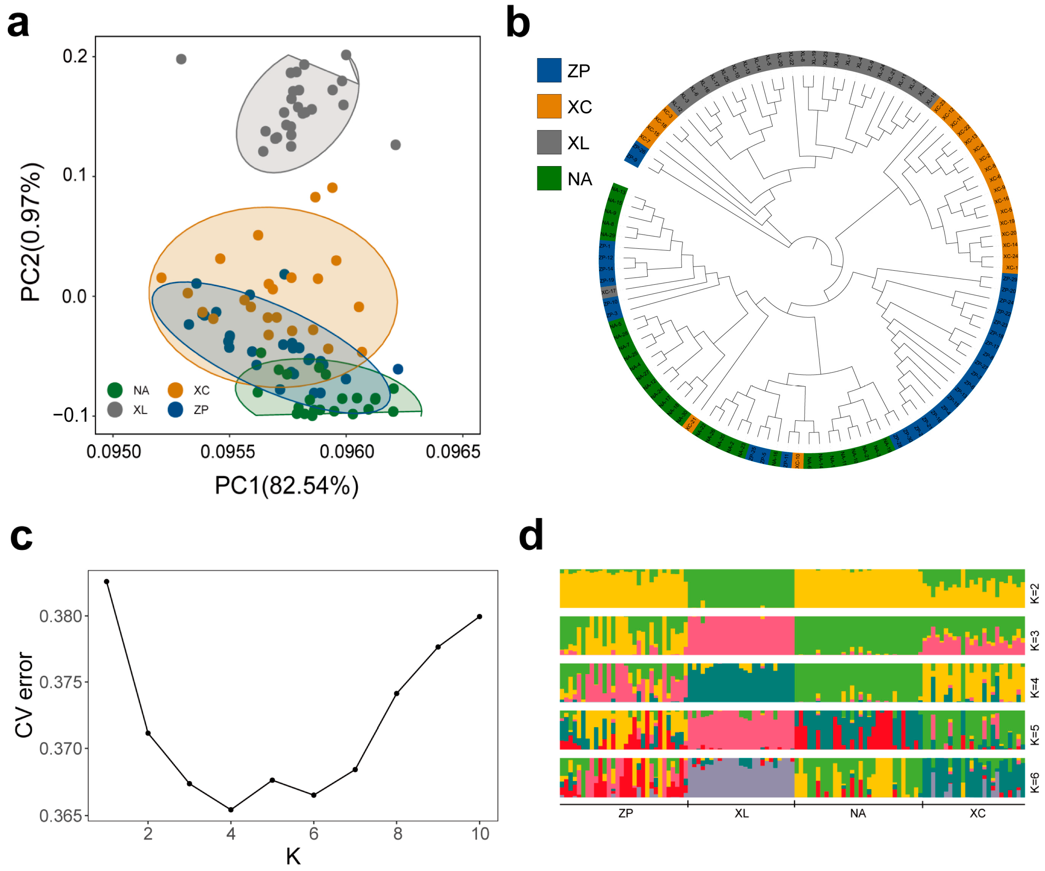 2.5. Population Structure Analysis