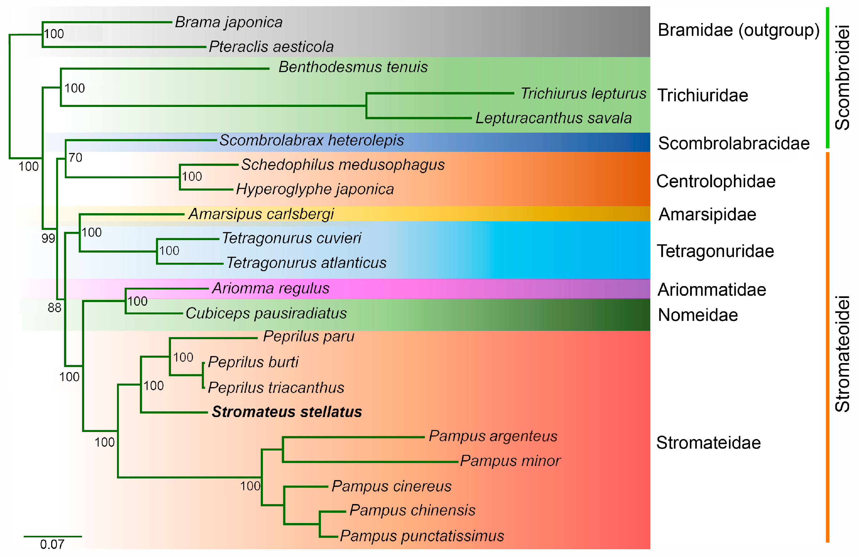 | Stromateidae | Pampus argenteus | KF373560 | [39] |