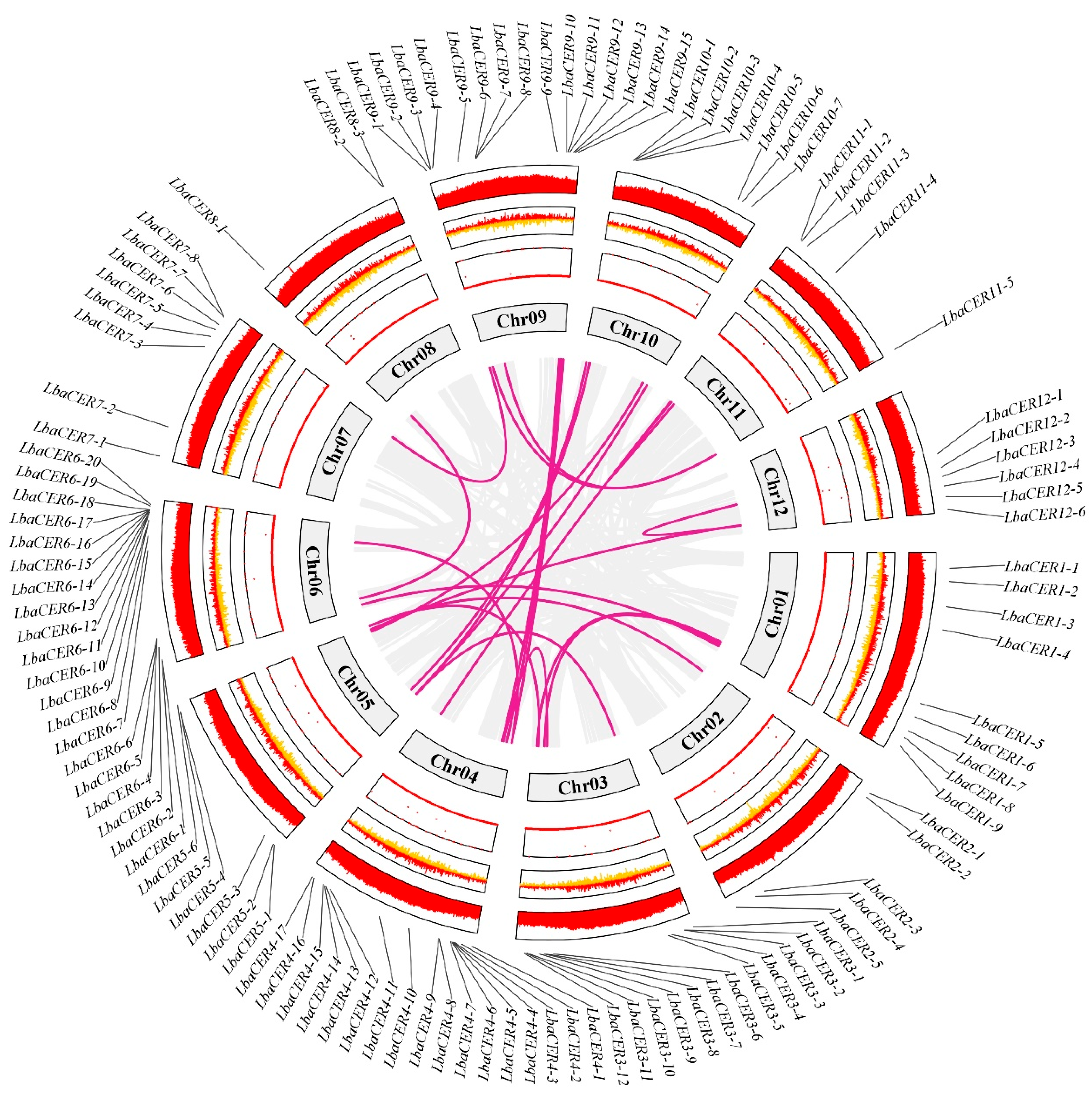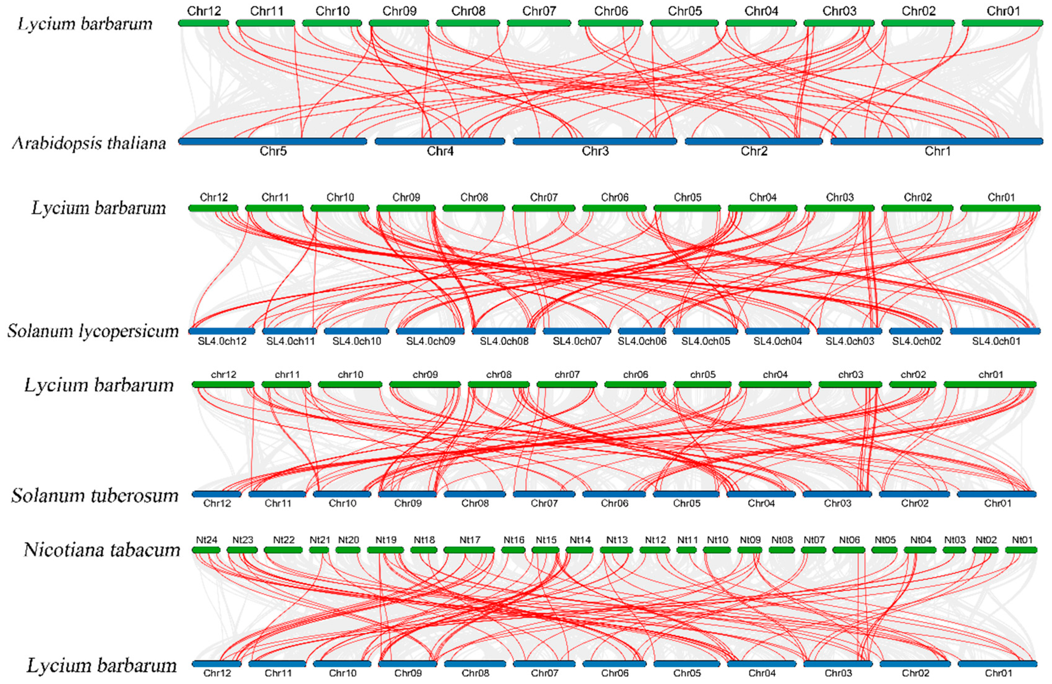 3.6. Synteny Analysis of Goji CER Gene Family Members