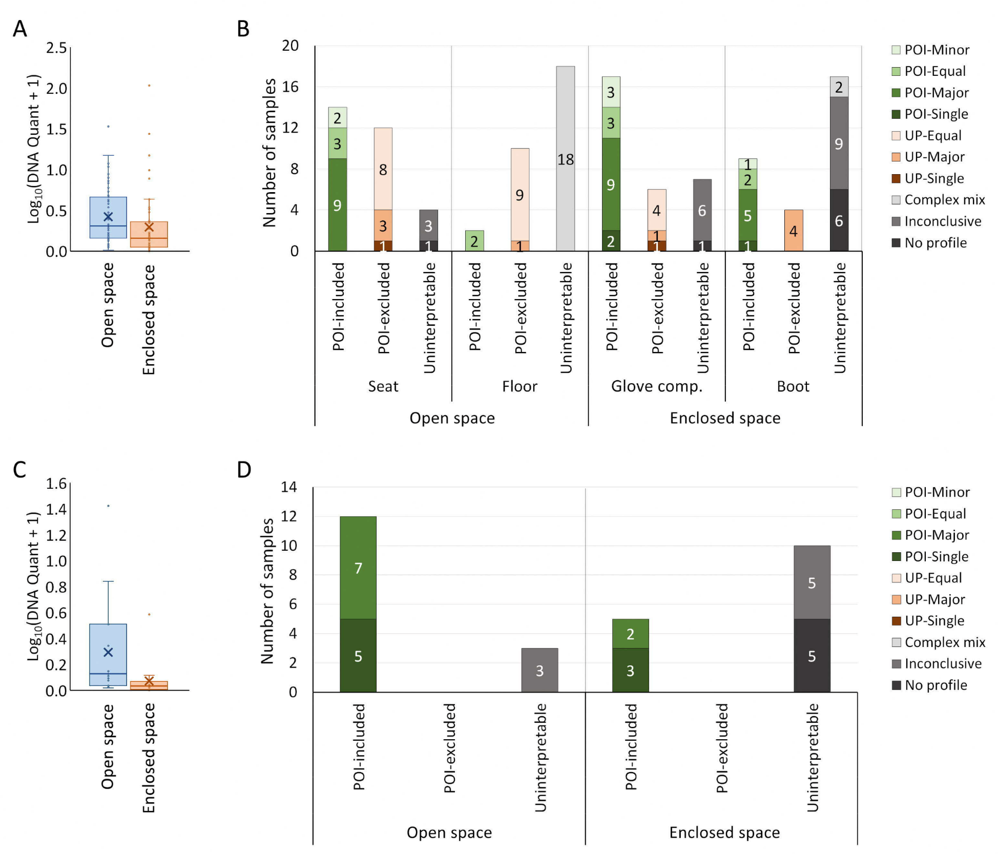 Table 4). In contrast, only four inconclusive DNA profiles were generated from the enclosed-space locations.