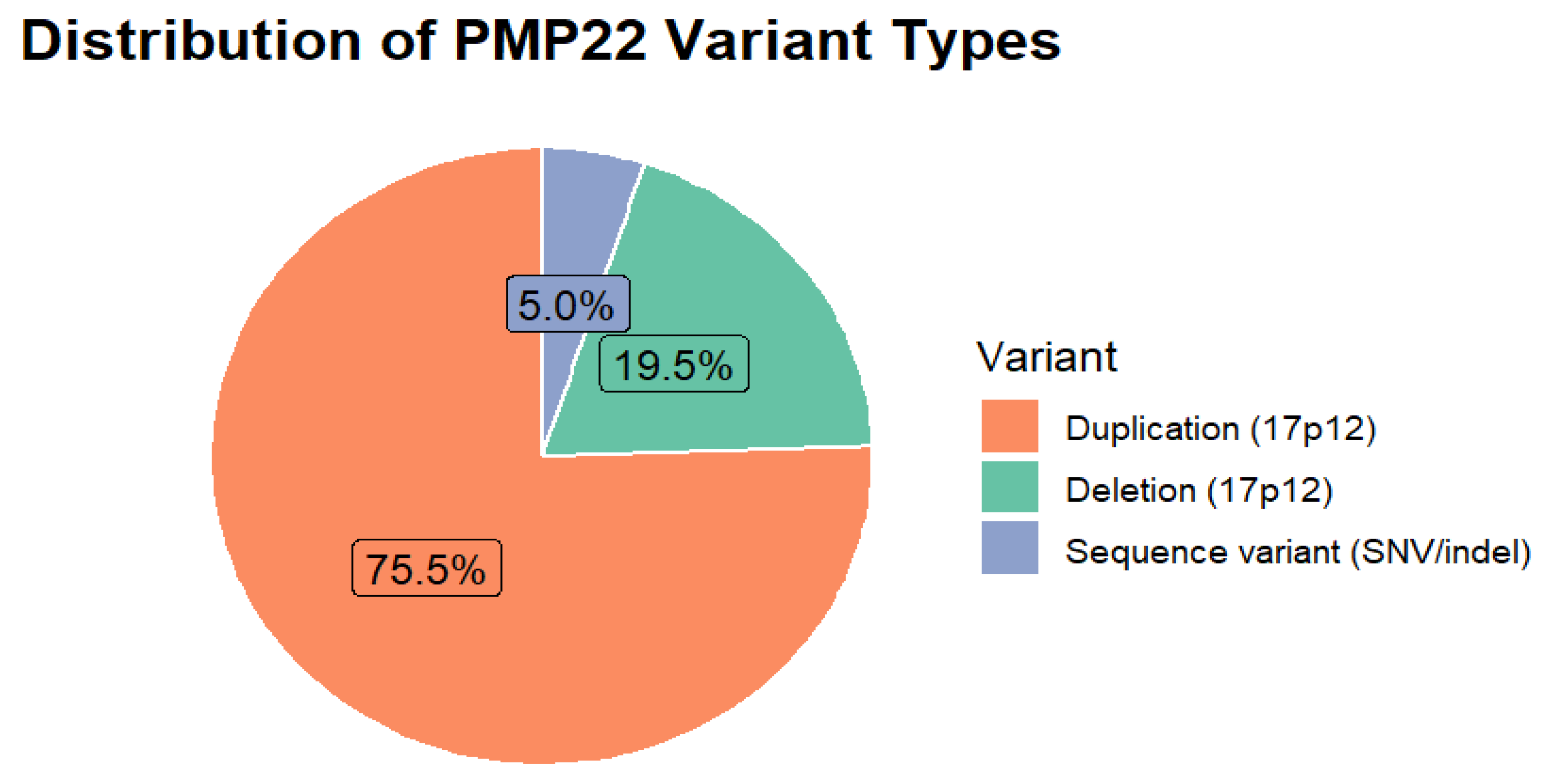 - Phenotypes: CMT1A (17p12 duplication), HNPP (17p12 deletion), CMT1E (single-nucleotide or indel variants in PMP22 classified as pathogenic or likely pathogenic), and DSS/Dejerine–Sottas attributed to PMP22.