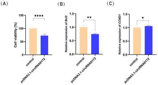 3.4. circRNA-0172 Promotes Apoptosis and Inhibits Proliferation
