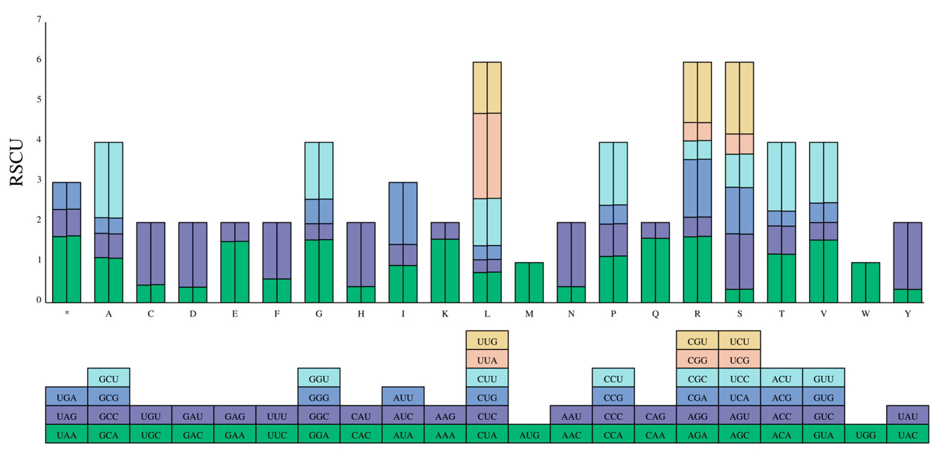3.4. Relative Synonymous Codon Usage (RSCU)