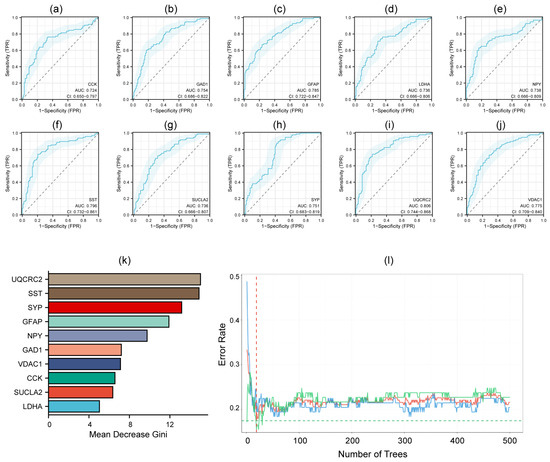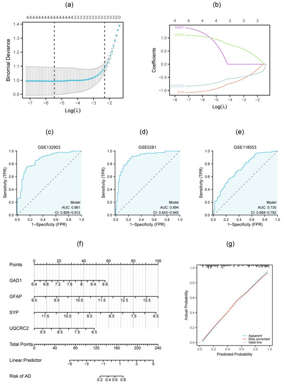 - Xu, W.; Su, X.; Qin, J.; Jin, Y.; Zhang, N.; Huang, S. Identification of Autophagy-Related Biomarkers and Diagnostic Model in Alzheimer’s Disease. Genes 2024, 15, 1027. [Google Scholar] [CrossRef]