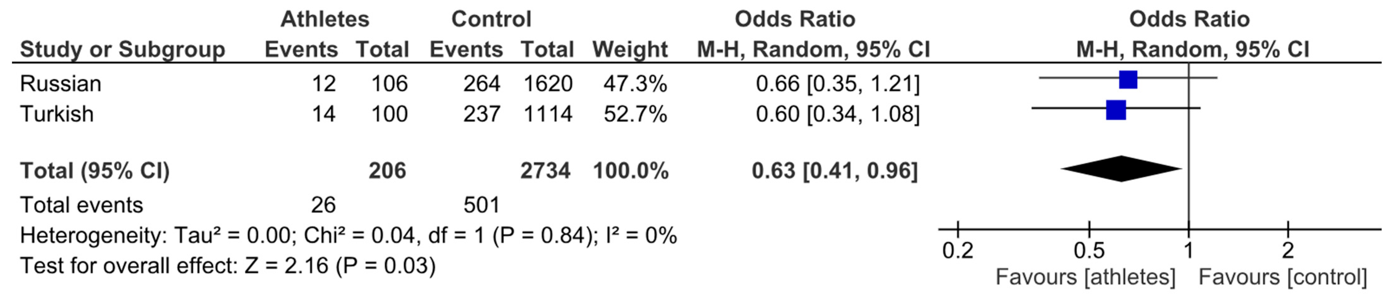 - Wang, C.; Li, H.; Chen, K.; Wu, B.; Liu, H. Association of Polymorphisms Rs1800012 in COL1A1 with Sports-Related Tendon and Ligament Injuries: A Meta-Analysis. Oncotarget 2017, 8, 27627–27634. [Google Scholar] [CrossRef]