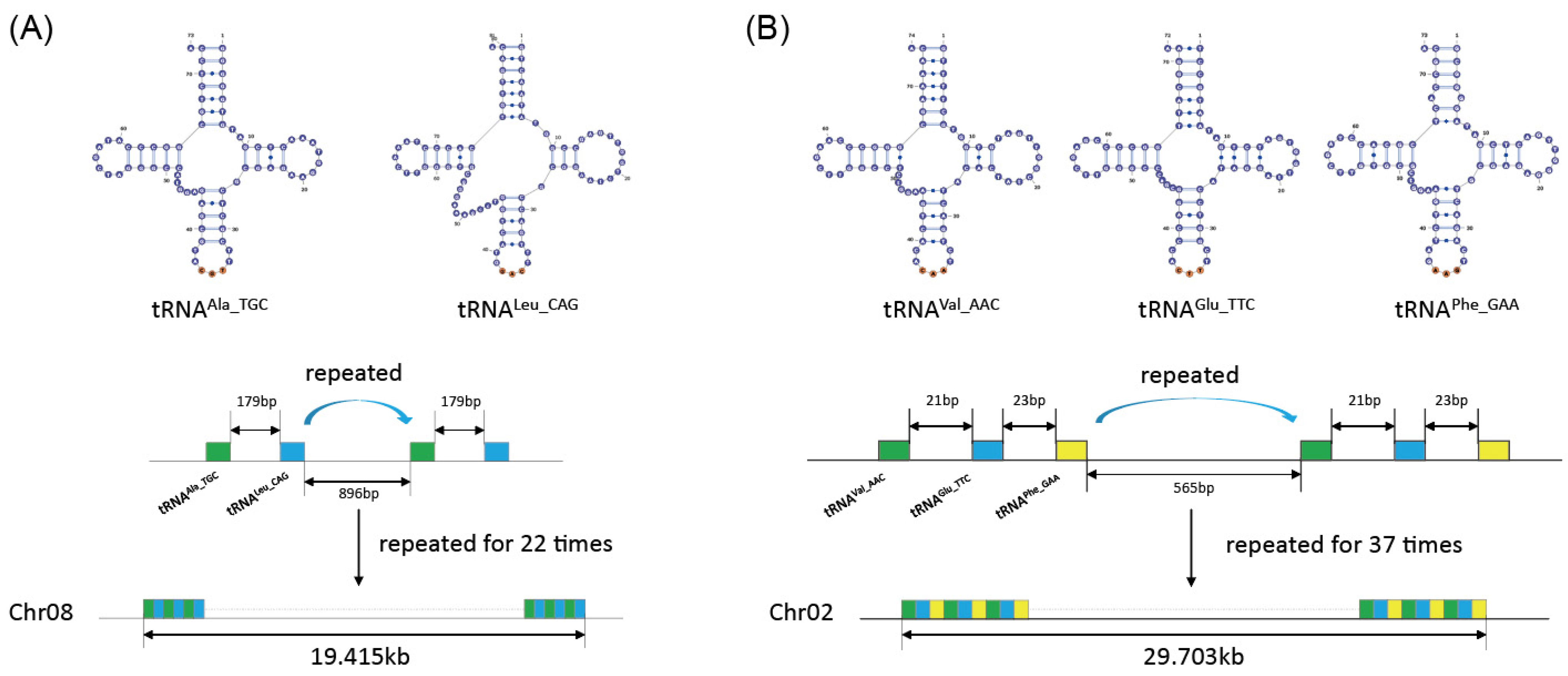 3.5. Identification of Tandem Duplication Event During tRNA Gene Expansion