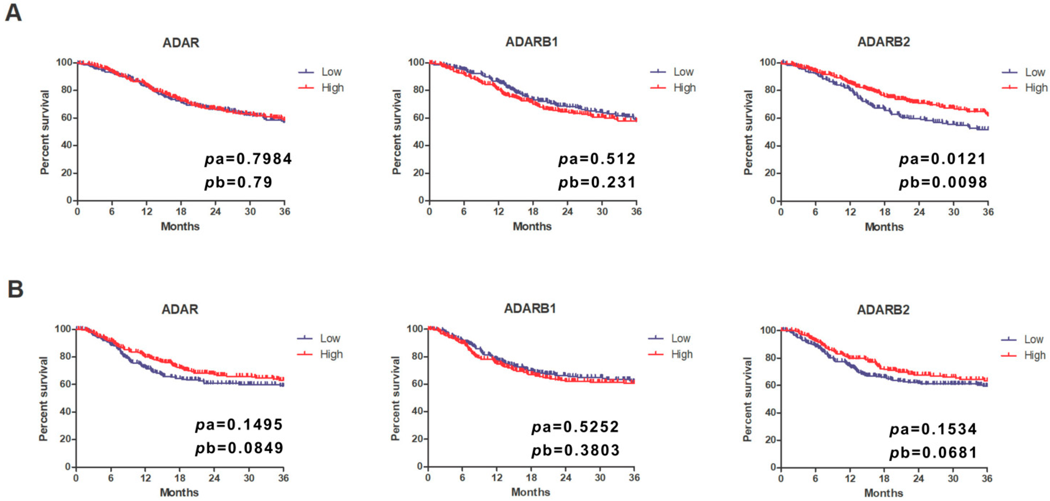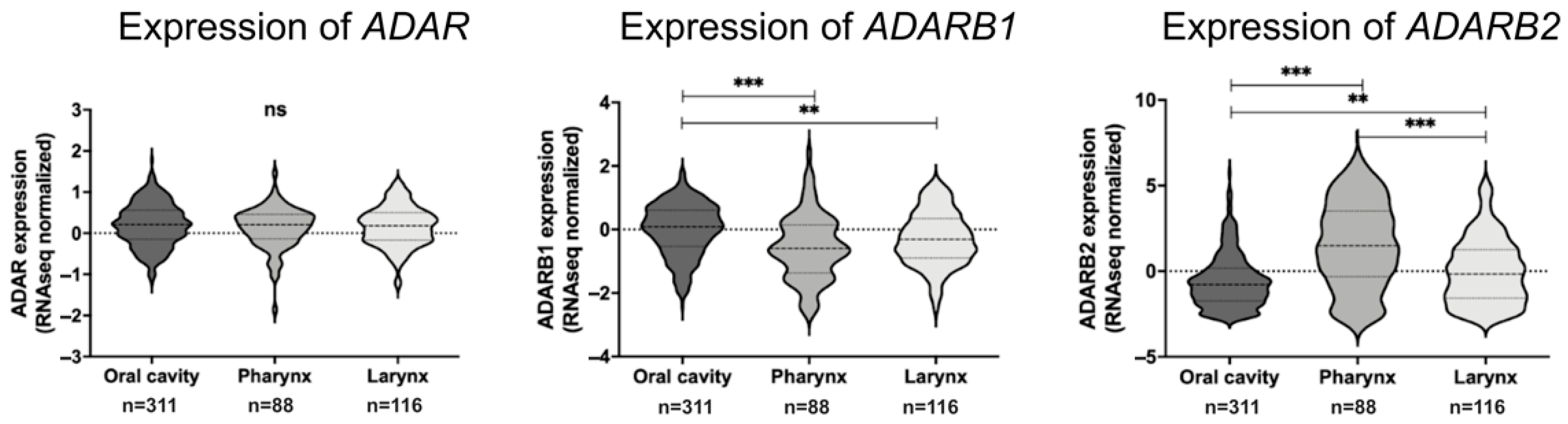 2.4. Analysis of ADAR, ADARB1, and ADARB2 Expression