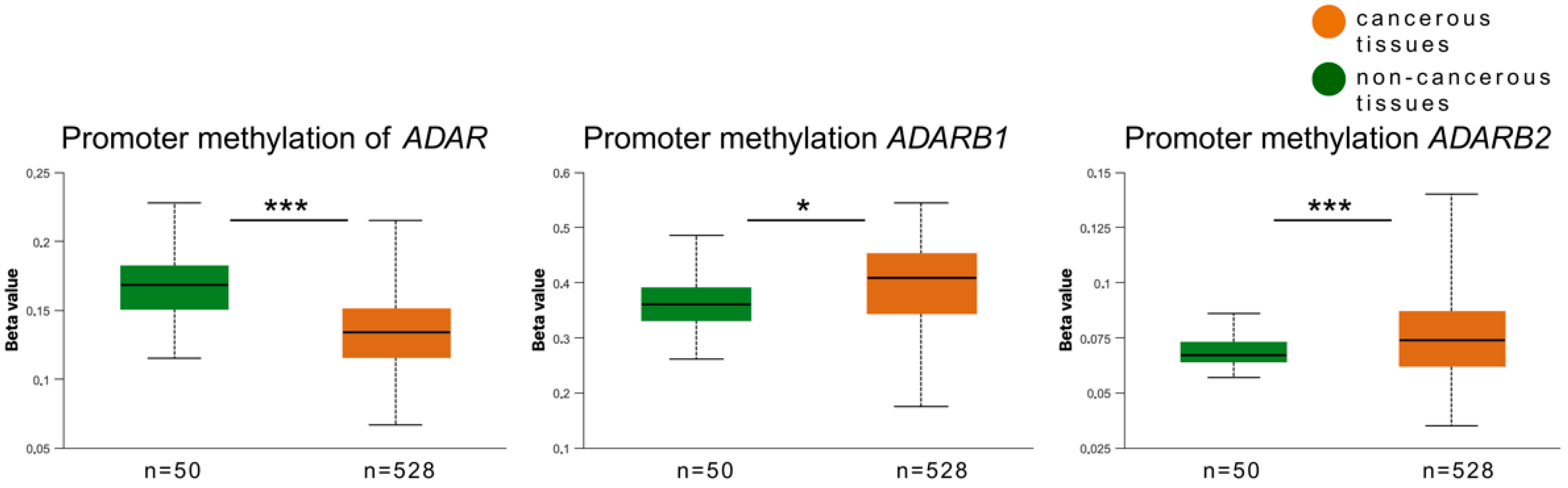 3.4. Promoter Methylation Analysis of ADAR Family Genes