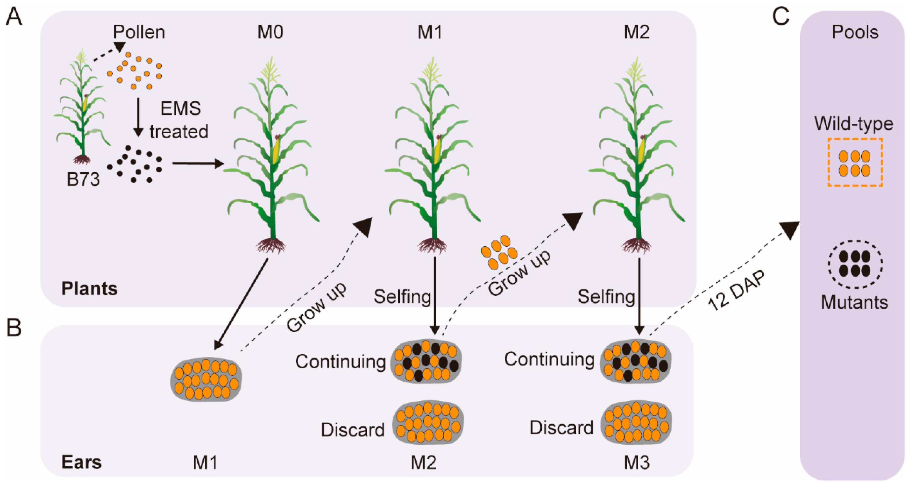 3.1. Construction of B73 EMS Mutant Population and Bulked Sergeant Library