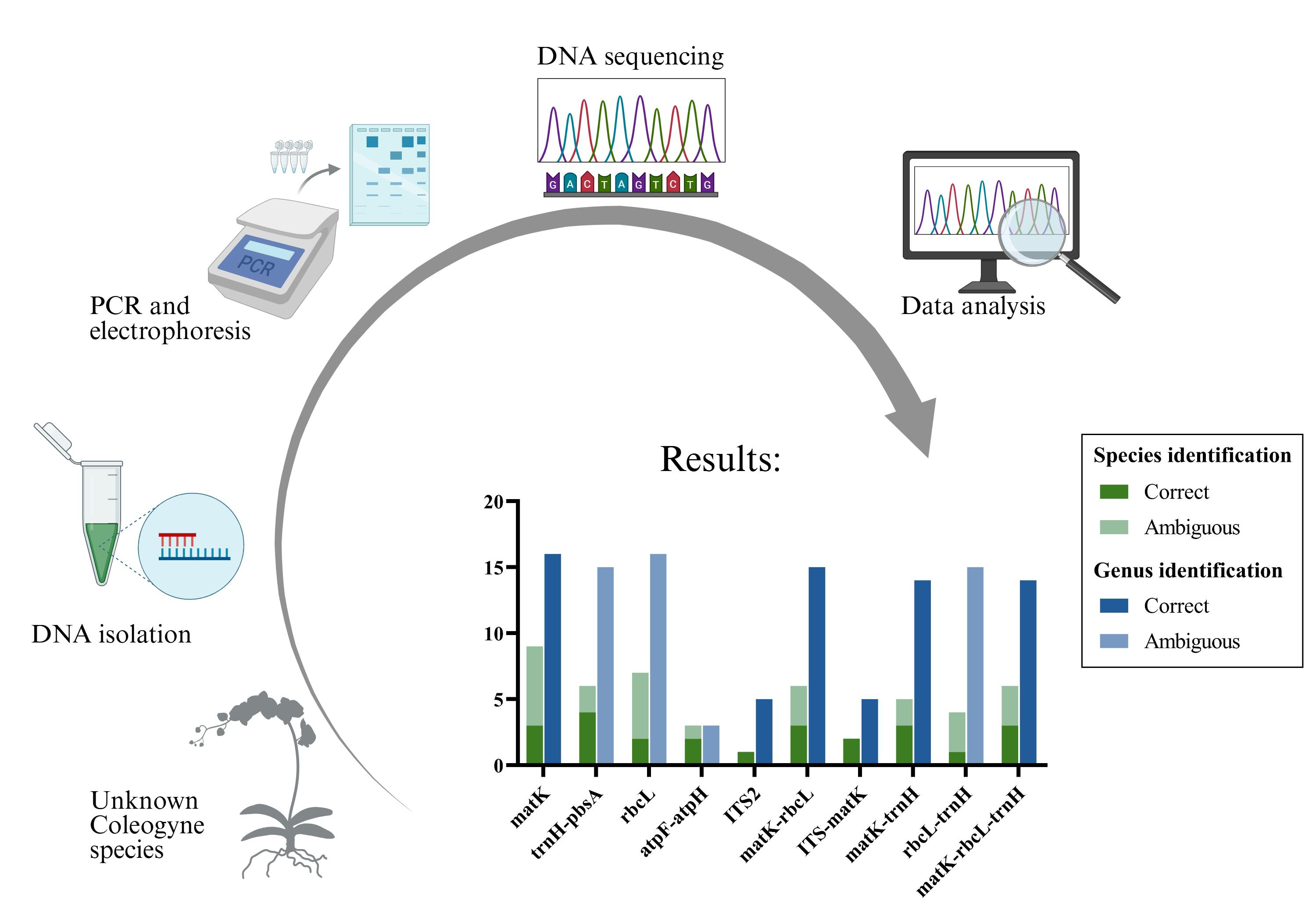 Coelogyne species in trade, directly contributing to their conservation. The key results of this work include the identification of suitable DNA barcoding regions with high resolution and reliability, which will form the basis for the subsequent development of practical identification kits. These achievements have great potential to reduce illegal trade in orchids and contribute to biodiversity conservation in a broader sense [