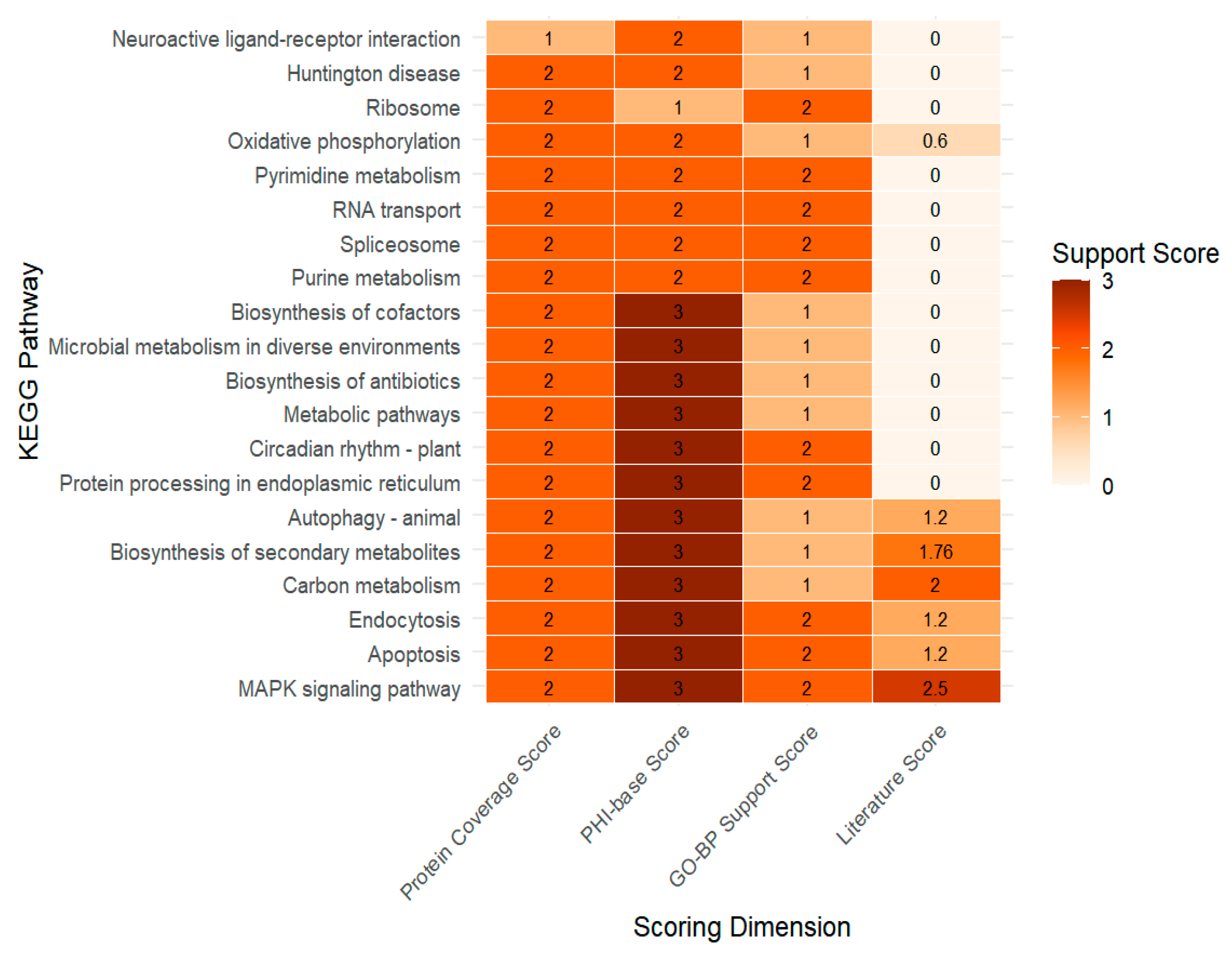 APA StyleWen, J., Wei, W., Li, J., Bai, H., Narisu, & Wang, R. (2025). An Integrative Multi-Source Evidence Framework for Prioritizing Virulence-Associated Pathways in Metarhizium brunneum. Genes, 16(11), 1363. https://doi.org/10.3390/genes16111363