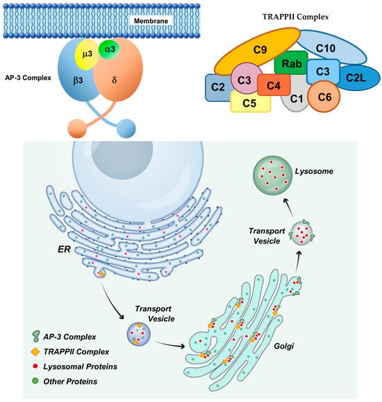 - Ma, Z.; Islam, M.N.; Xu, T.; Song, E. AP-3 Adaptor Complex-Mediated Vesicle Trafficking. Biophys. Rep. 2021, 7, 91–100. [Google Scholar] [CrossRef]