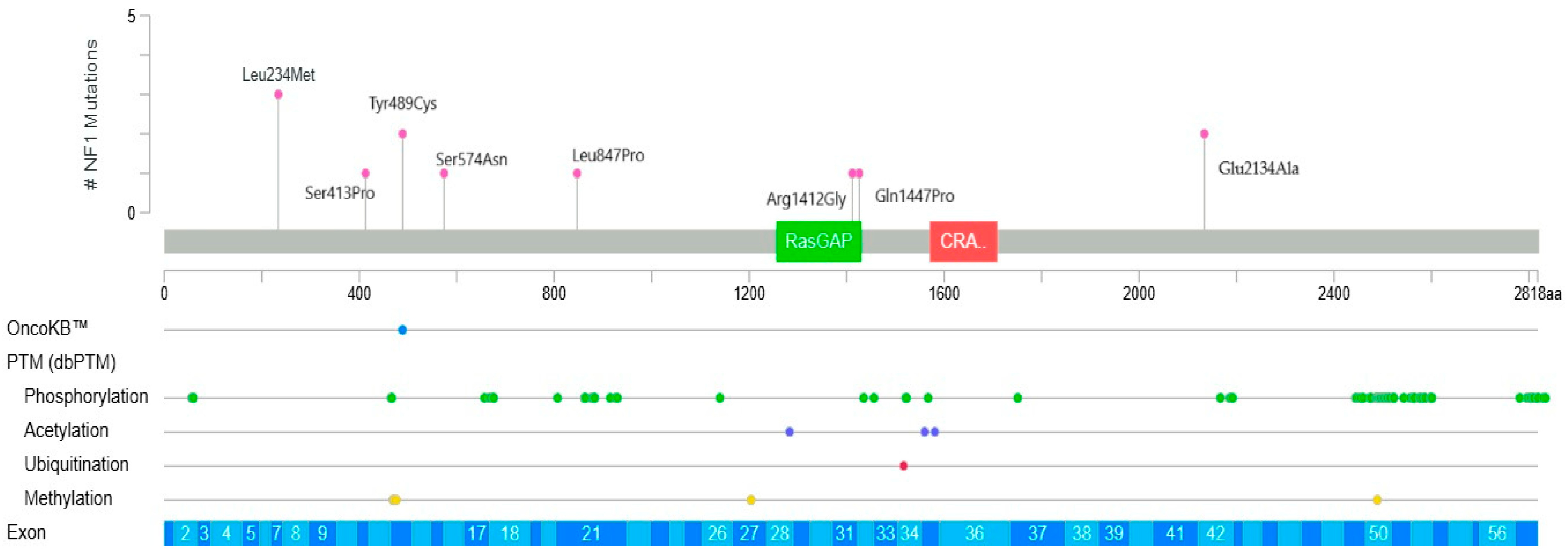 3. Tao, J.; Sun, D.; Dong, L.; Hou, H. Advancement in Research and Therapy of NF1 Mutant Malignant Tumors. Cancer Cell Int. 2020, 20, 492. [Google Scholar] [CrossRef]