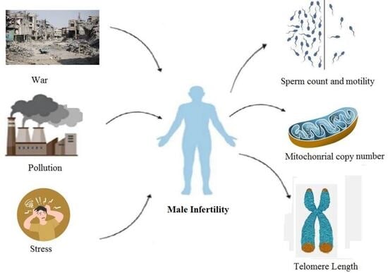 - Rajesh, K.; Vatsalaswamy, P.; Manvikar, P. The association of male infertility with telomere length: A case control study. Indian. J. Clin. Anat. Physiol. 2021, 8, 325–332. [Google Scholar] [CrossRef]