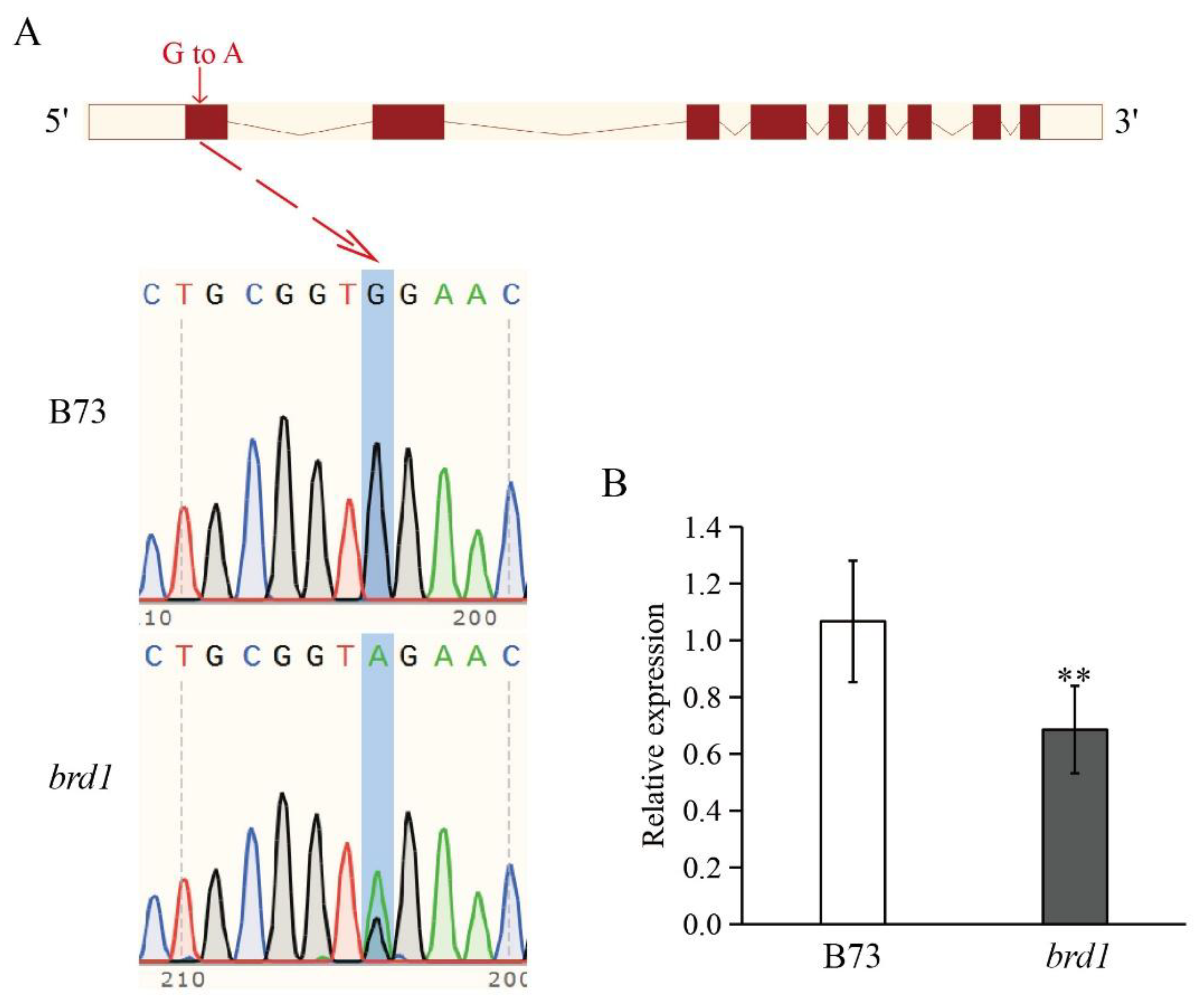 3.3. The Impact of ZmBRD1 on Plant Architecture in Maize