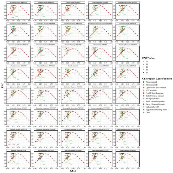 2.7. Analysis of Codon Usage Bias Using ENC–GC3 Plots