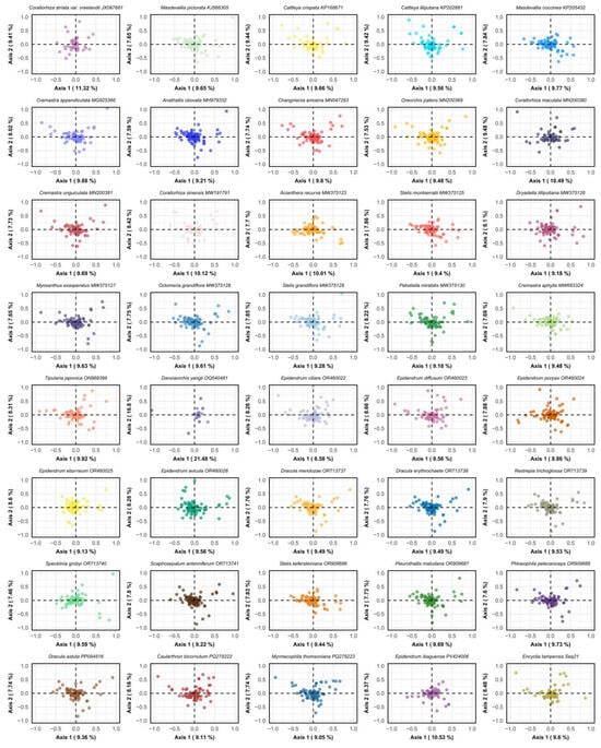 - Zhang, G.; Hu, Y.; Huang, M.Z.; Huang, W.C.; Liu, D.K.; Zhang, D.; Hu, H.; Downing, J.L.; Liu, Z.J.; Ma, H. Comprehensive phylogenetic analyses of Orchidaceae using nuclear genes and evolutionary insights into epiphytism. J. Integr. Plant Biol. 2023, 65, 1204–1225. [Google Scholar] [CrossRef] [PubMed]