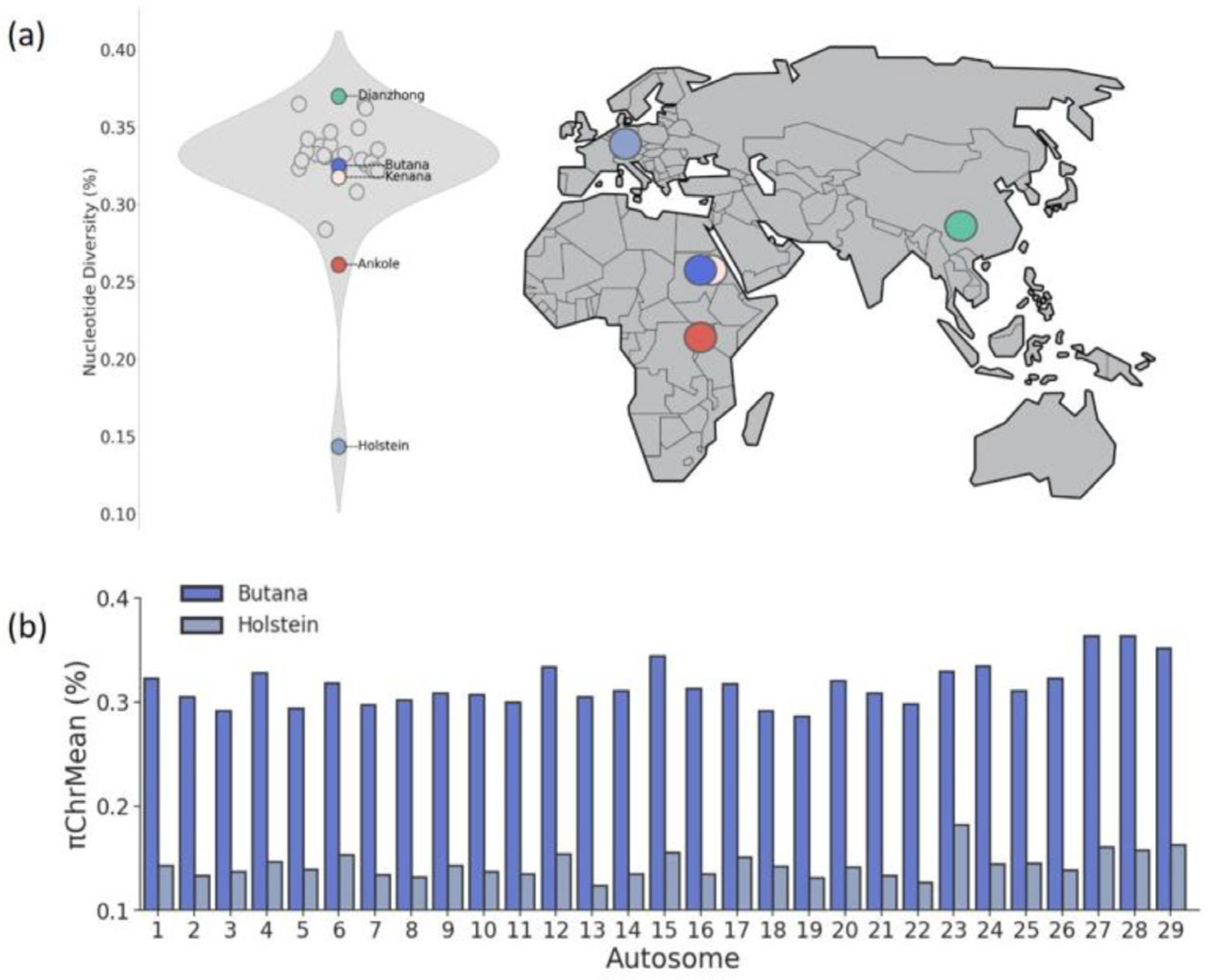3.2. High Diversity and Low Inbreeding Detected in Butana Cattle
