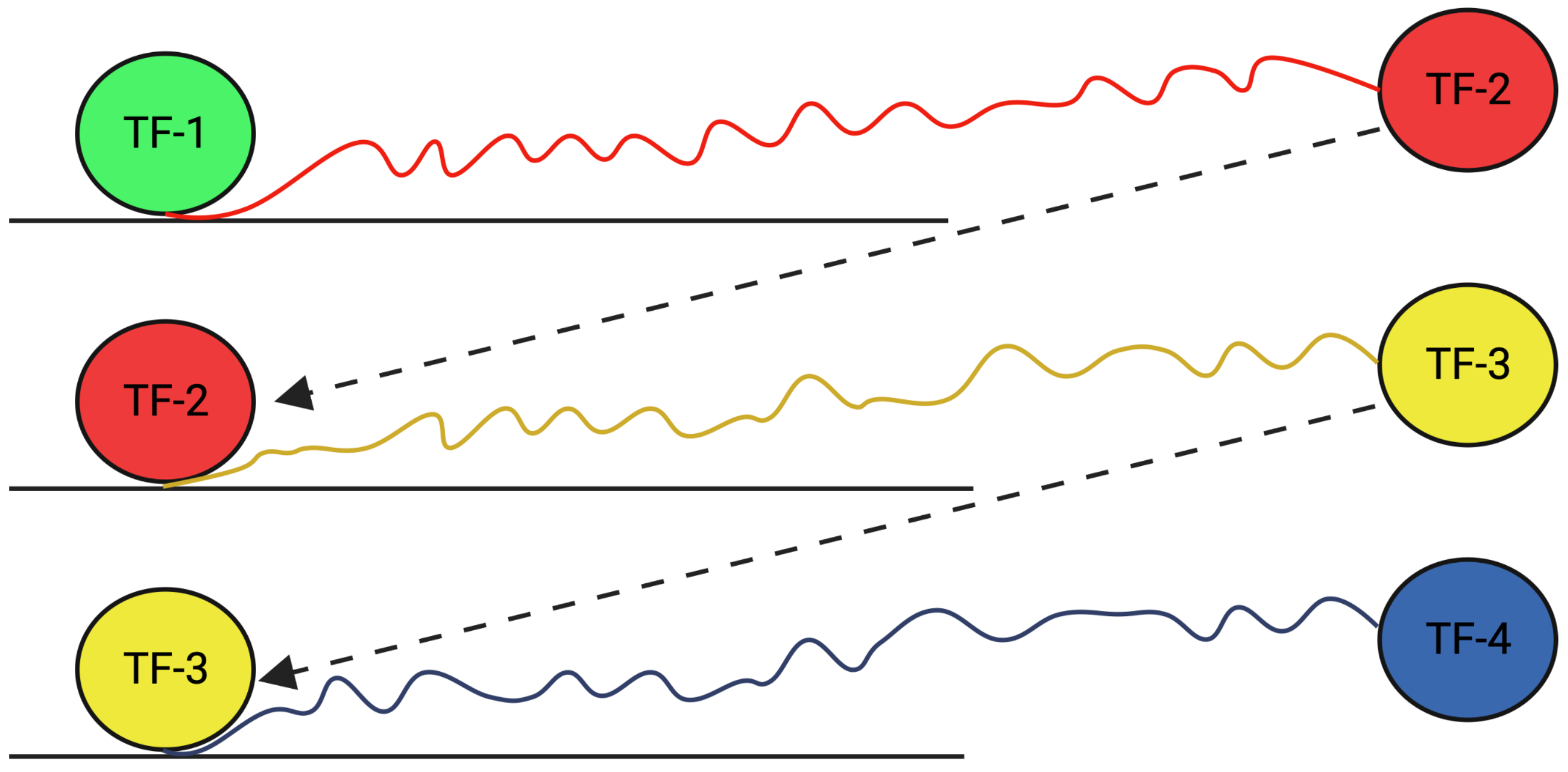 Thus, TF cascades are important for the proper regulation of gene expression and are involved in many cellular processes, including development, cell growth and division, and response to environmental signals. They allow cells to respond to specific signals in a highly coordinated and controlled manner. For example, when a cell receives a signal from its environment, a TF cascade may be activated, leading to the expression of specific genes that allow the cell to respond to the signal.