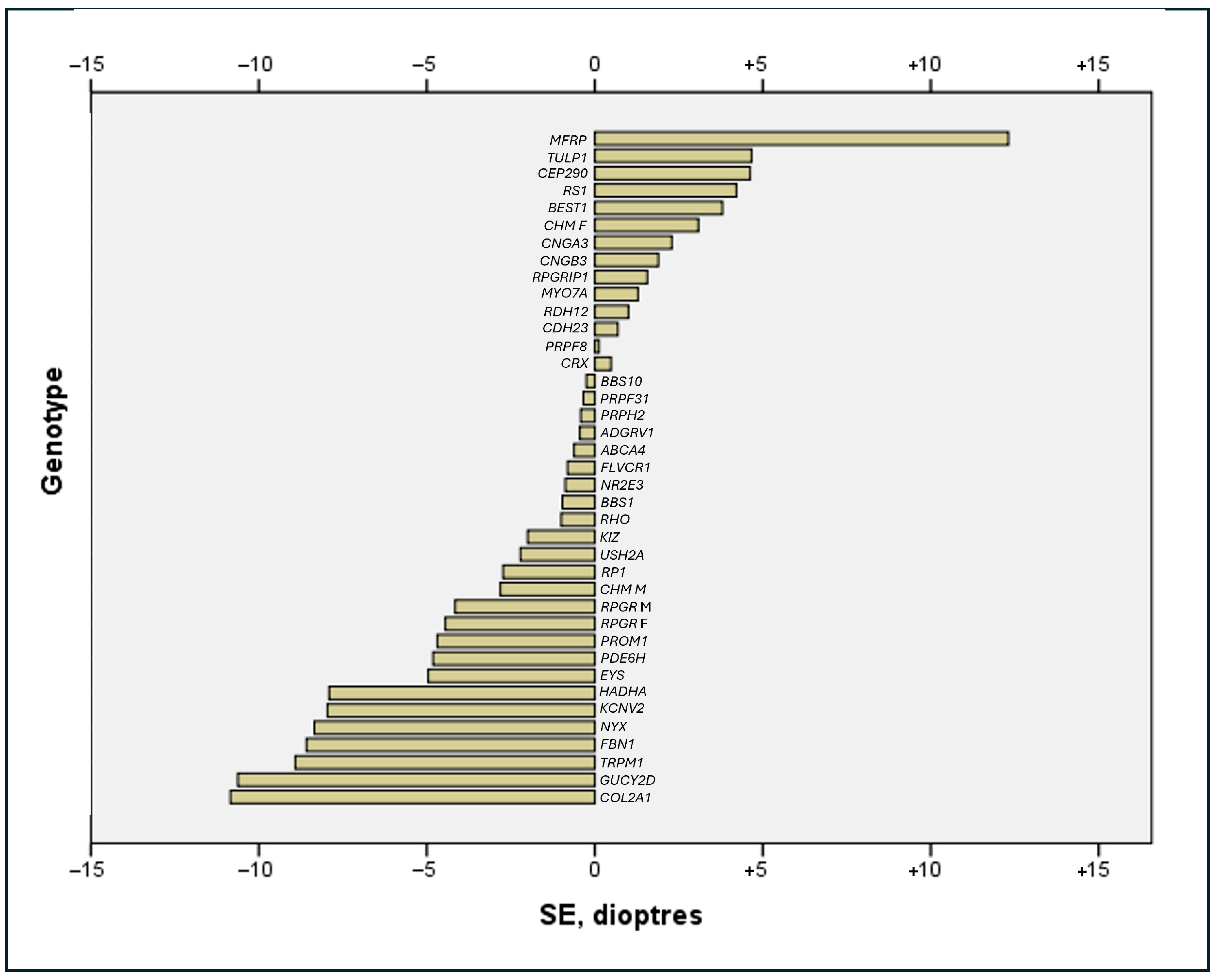 - Yassin, S.H.; Wagner, N.E.; Khuu, T.; Schmidt, R.; Igelman, A.D.; Marra, M.; Schwartz, H.; Walker, E.; Nagiel, A.; Yang, P.; et al. Refractive Error in Inherited Retinal Disease. Am. J. Ophthalmol. 2025, 269, 381–392. [Google Scholar] [CrossRef]