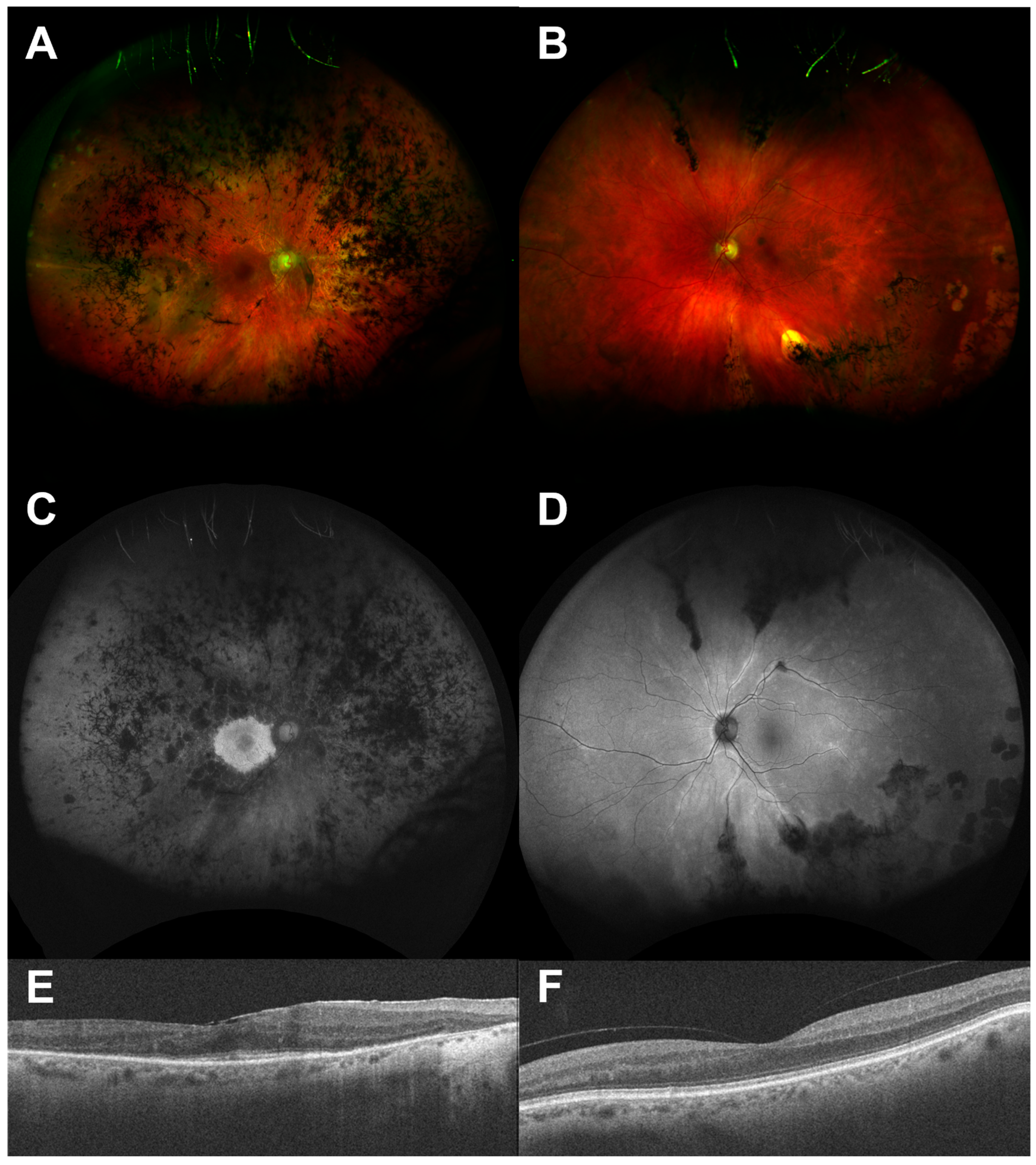 - O’Connell, A.; Stephenson, K.A.J.; Zhu, J.; FitzSimon, S. Coats-like exudative vitreoretinopathy (CLEVER) in CEP290 inherited retinal degeneration. BMJ Case Rep. 2022, 15, e247229. [Google Scholar] [CrossRef]