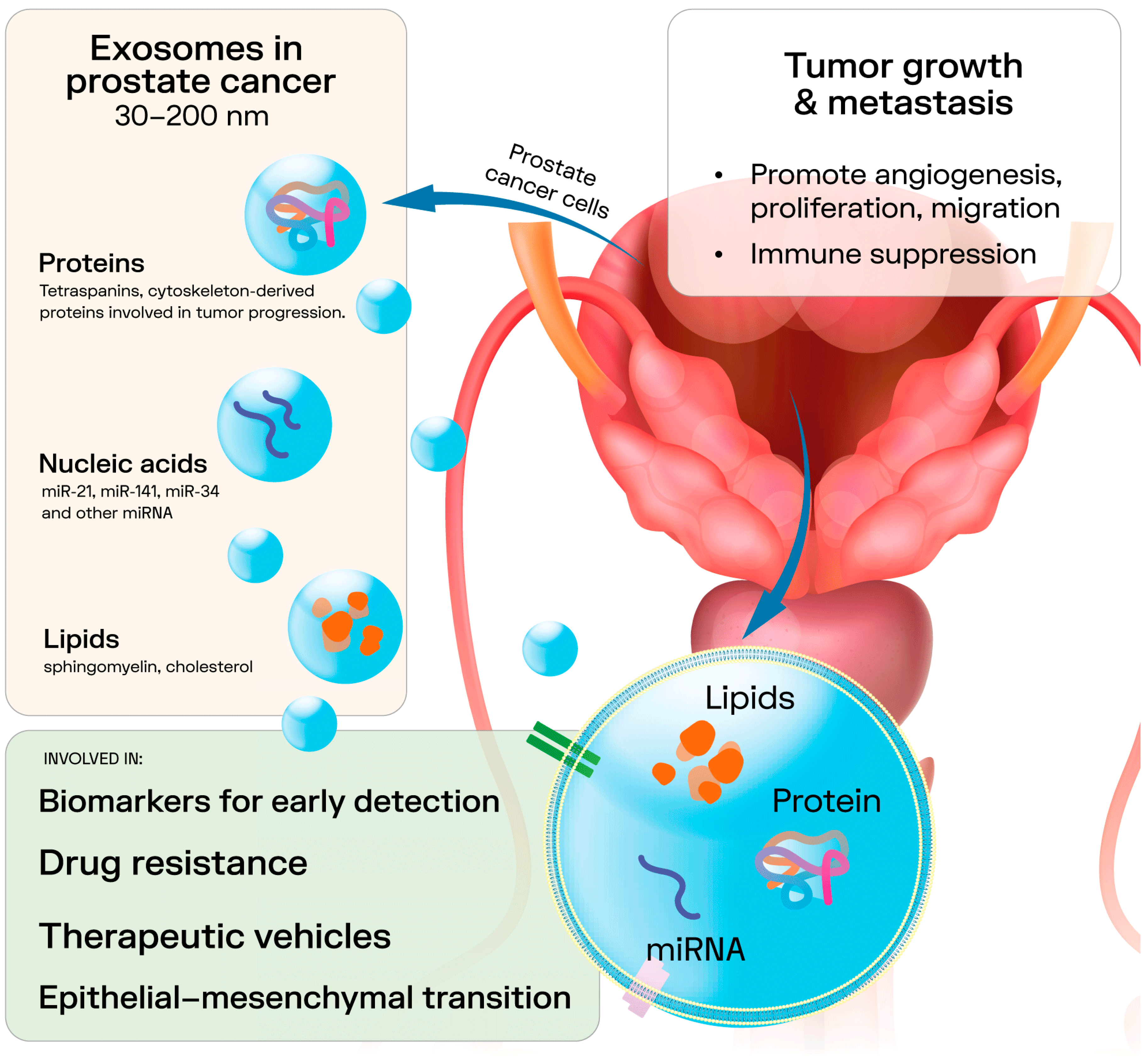 - Vlaeminck-Guillem, V. Extracellular Vesicles in Prostate Cancer Carcinogenesis, Diagnosis, and Management. Front. Oncol. 2018, 8, 222. [Google Scholar] [CrossRef] [PubMed] [PubMed Central]