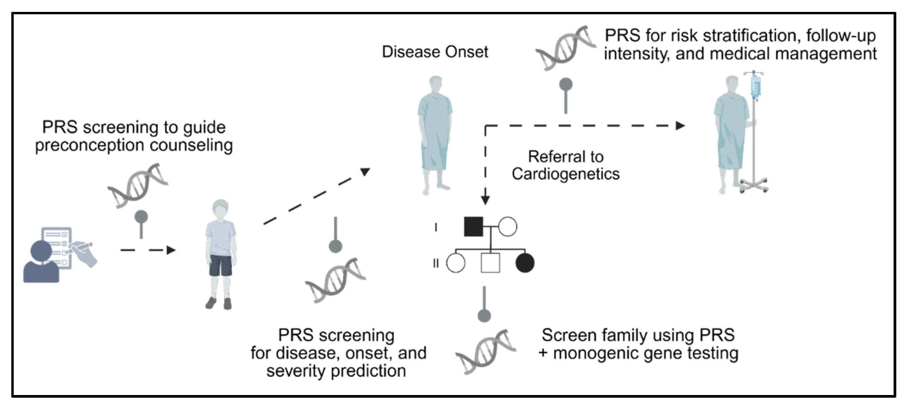 - Schunkert, H.; Di Angelantonio, E.; Inouye, M.; Patel, R.S.; Ripatti, S.; Widen, E.; Sanderson, S.C.; Kaski, J.P.; McEvoy, J.W.; Vardas, P.; et al. Clinical utility and implementation of polygenic risk scores for predicting cardiovascular disease A clinical consensus statement of the ESC Council on Cardiovascular Genomics, the ESC Cardiovascular Risk Collaboration, and the European Association of Preventive Cardiology. Eur. Heart J. 2025, 46, 1372–1383. [Google Scholar] [PubMed]