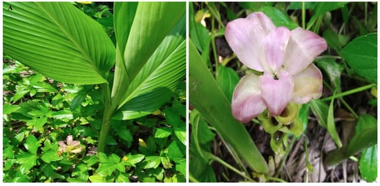 The ginger family, or Zingiberaceae, is the largest and most diverse family in the order Zingiberales [1,2]. There are over 50 genera and about 1300 species, predominantly spread out in tropical and subtropical areas [3,4,5]. The perennial herb Curcuma, which belongs to this family, is native to tropical Asia, Australia, and the South Pacific [6,7]. Plants with rhizomes are common sources of food, medicine, and economic value [8,9]. In Asia, we can find them as spices, natural dyes, and traditional medicines. Research using phenotype screening has identified various curcuma species with antioxidant, antidiabetic, antitumor, neuroprotective, hepatoprotective, and antimicrobial properties [10]. The Family Zingiberaceae contains several useful species. The Zingiberaceae family contains several species valued for their economic and medicinal uses. Among them, about 50 Curcuma species are native to Southeast Asia [11], and nine species have been recorded in the flora of Bangladesh [12,13]. Those plants are rhizomatous herbs that typically grow in shaded forests [14].