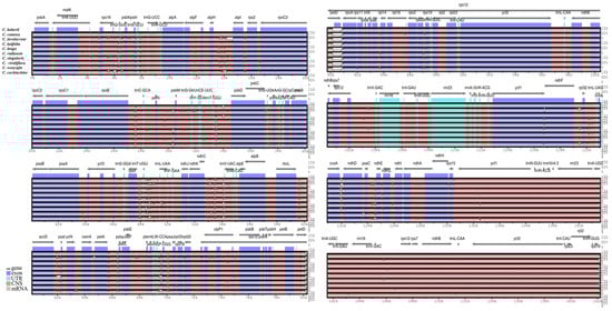 - Tillich, M.; Lehwark, P.; Pellizzer, T.; Ulbricht-Jones, E.S.; Fischer, A.; Bock, R.; Greiner, S. GeSeq—Versatile and Accurate Annotation of Organelle Genomes. Nucleic Acids Res. 2017, 45, W6–W11. [Google Scholar] [CrossRef]