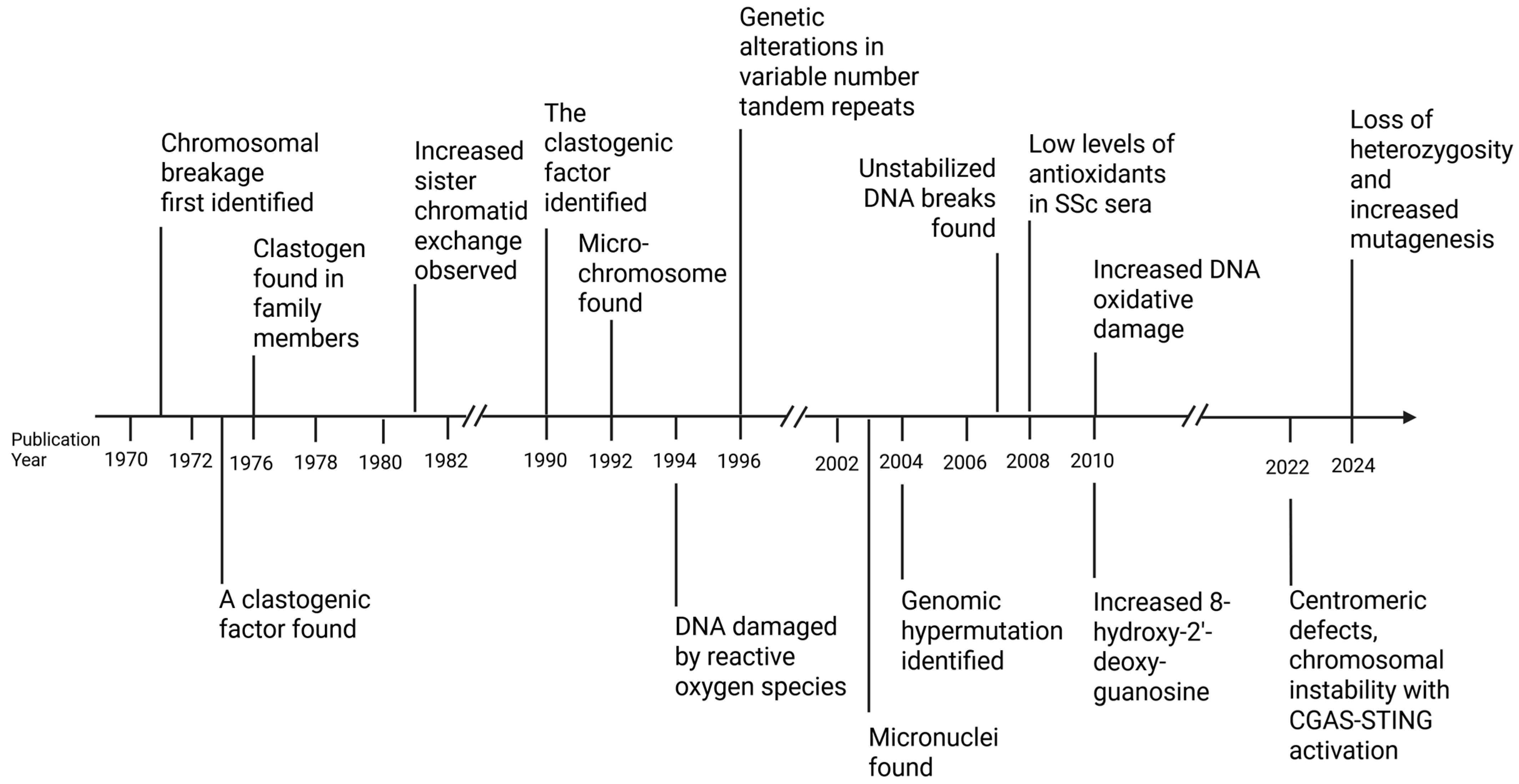 Artlett, C.M. Chromosomal Instability and Telomere Attrition in Systemic Sclerosis: A Historical Perspective. Genes 2025, 16, 1466. https://doi.org/10.3390/genes16121466