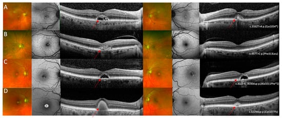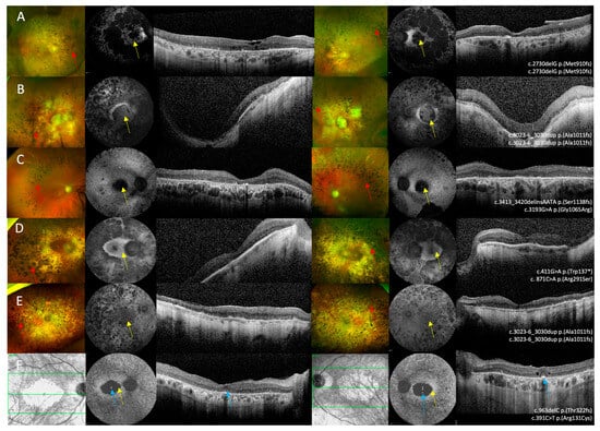 27. Khan, A.O.; Al Teneiji, A.M. Homozygous and heterozygous retinal phenotypes in families harbouring IMPG2 mutations. Ophthalmic Genet. 2019, 40, 247–251. [Google Scholar] [CrossRef]