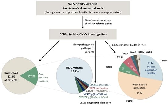 APA StyleKafantari, E., Atterling Brolin, K., Wallenius, J., Swanberg, M., & Puschmann, A. (2025). WES-Based Screening of a Swedish Patient Series with Parkinson’s Disease. Genes, 16(12), 1482. https://doi.org/10.3390/genes16121482
