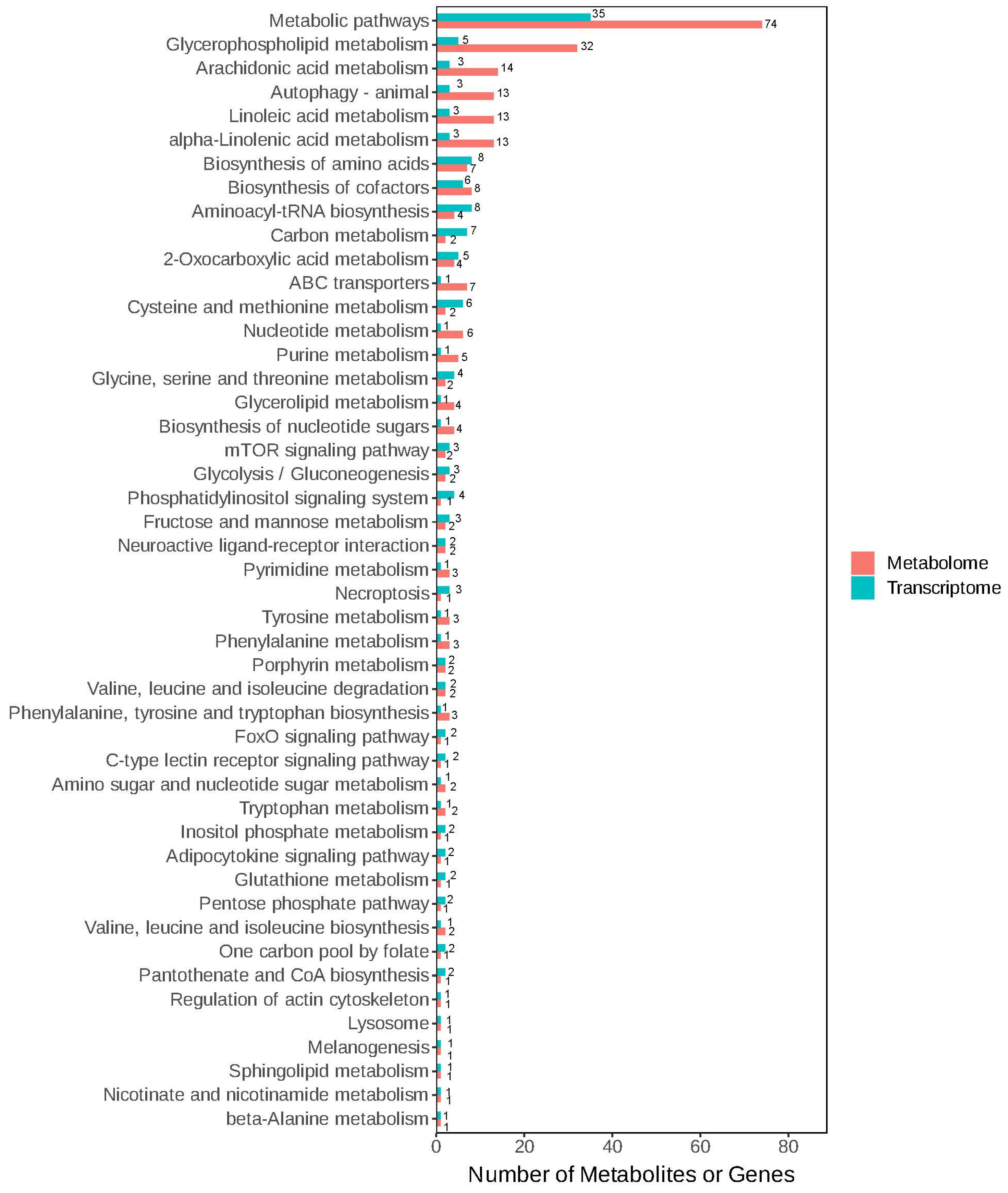 Chicago/Turabian StyleLiu, Wenshu, Yuzhu Wang, Xiaoze Guo, Jingjing Lu, Lingya Li, Siming Li, Yanqiang Tang, and Haihong Xiao. 2025. "Transcriptomic and Metabolomic Insights into the Hepatic Response to Dietary Carvacrol in Pengze Crucian Carp (Carassius auratus var. Pengze)" Genes 16, no. 12: 1491. https://doi.org/10.3390/genes16121491
