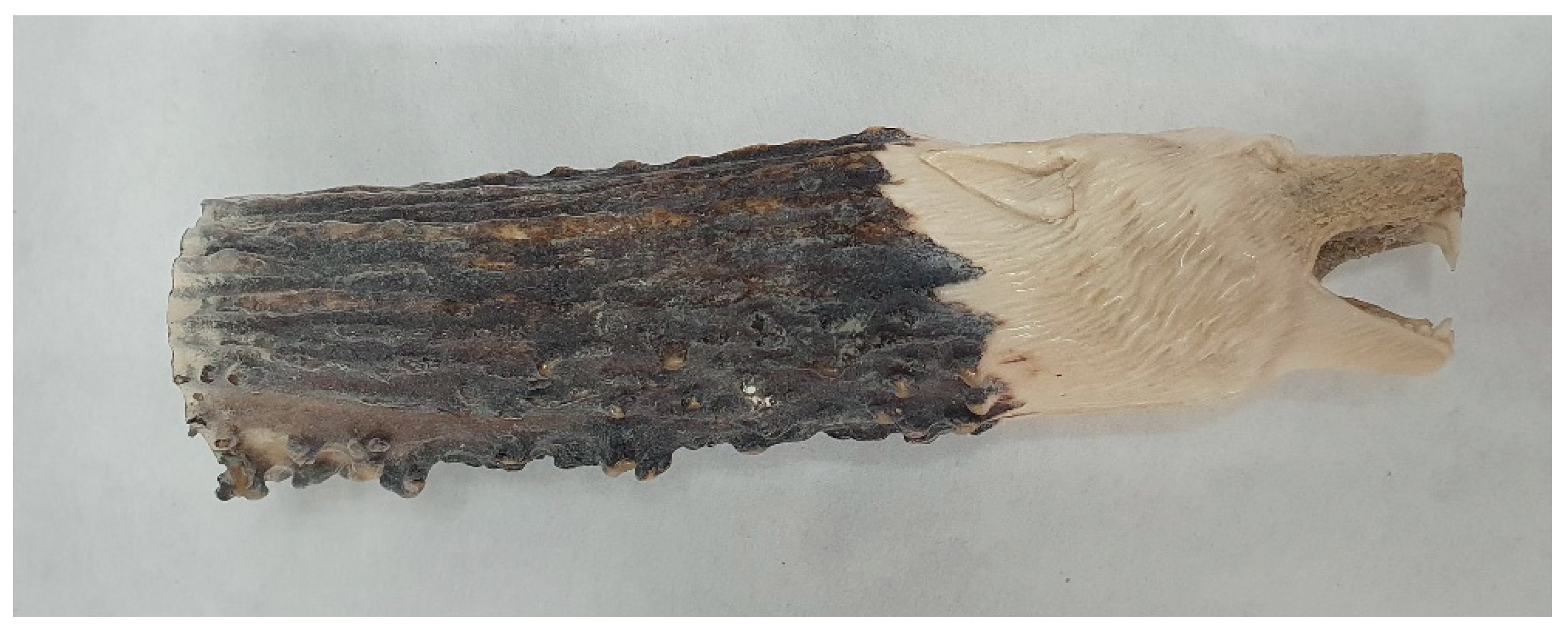 - Kufnerová, J.; Frouzová, J.; Světlík, I.; Weissová, K.; Brabcová, K.P. Expert opinion versus radiocarbon dating in the ivory trade. Glob. Ecol. Conserv. 2025, 61, e03659. [Google Scholar] [CrossRef]