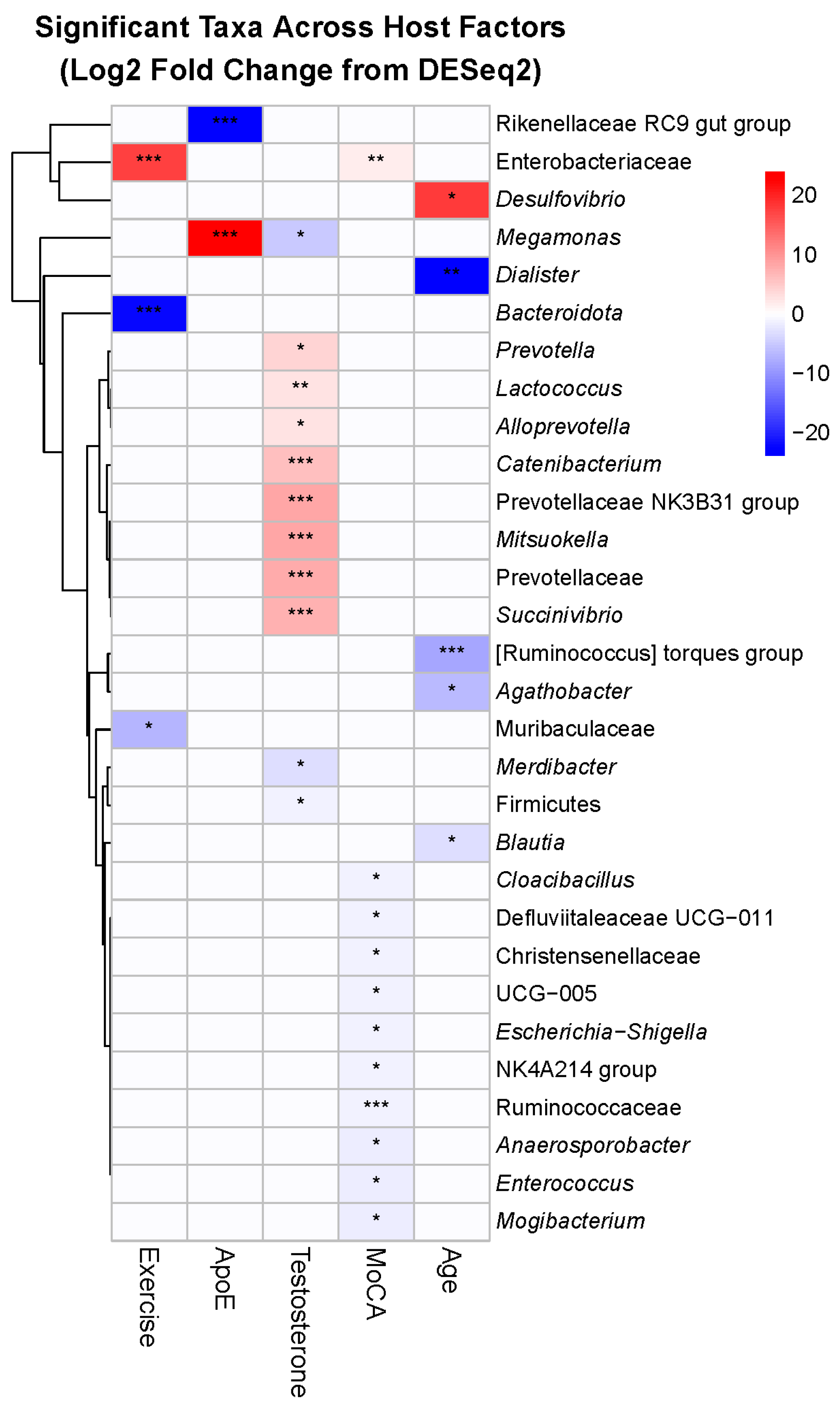 3.5. Taxon-Level Analysis Identifies Specific Bacterial Signatures of Host Factors