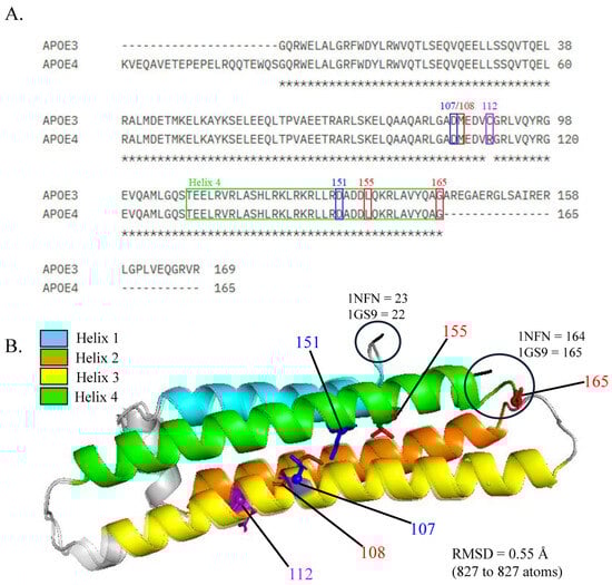 3.1. Sequence and Structural Alignment of APOE3 and APOE4
