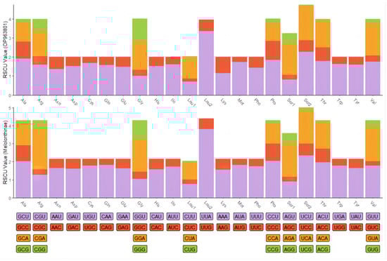 - Parvathy, S.T.; Udayasuriyan, V.; Bhadana, V. Codon Usage Bias. Mol. Biol. Rep. 2022, 49, 539–565. [Google Scholar] [CrossRef] [PubMed]
