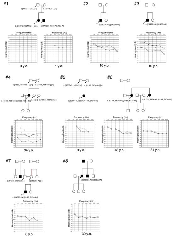 Hearing loss (HL) is one of the most common sensory impairments, affecting approximately 1.62 in 1000 newborns [1]. In developed countries, genetic causes account for at least half of congenital or childhood-onset HL cases [1,2]. To date, variations in 89 genes have been identified as a cause of autosomal recessive non-syndromic HL (ARNSHL), which is the most common type of genetic HL (Hereditary Hearing Loss Homepage: https://hereditaryhearingloss.org). The major causative genes of non-syndromic HL in Japanese patients are GJB2 (12.9%), SLC26A4 (3.4%), and CDH23 (3.4%), whereas the ratio shifts to GJB2 (7.8%), STRC (3.4%), and KCNQ4 (2.2%) among patients classified with mild-to-moderate HL [3].