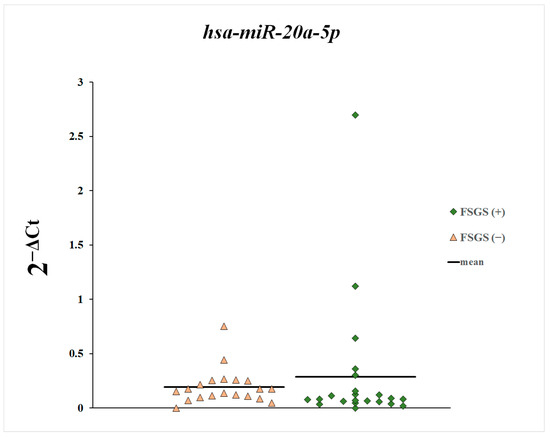 Plasma levels of miR-20a-5p in patients with and without diagnosed focal segmental glomerulosclerosis.